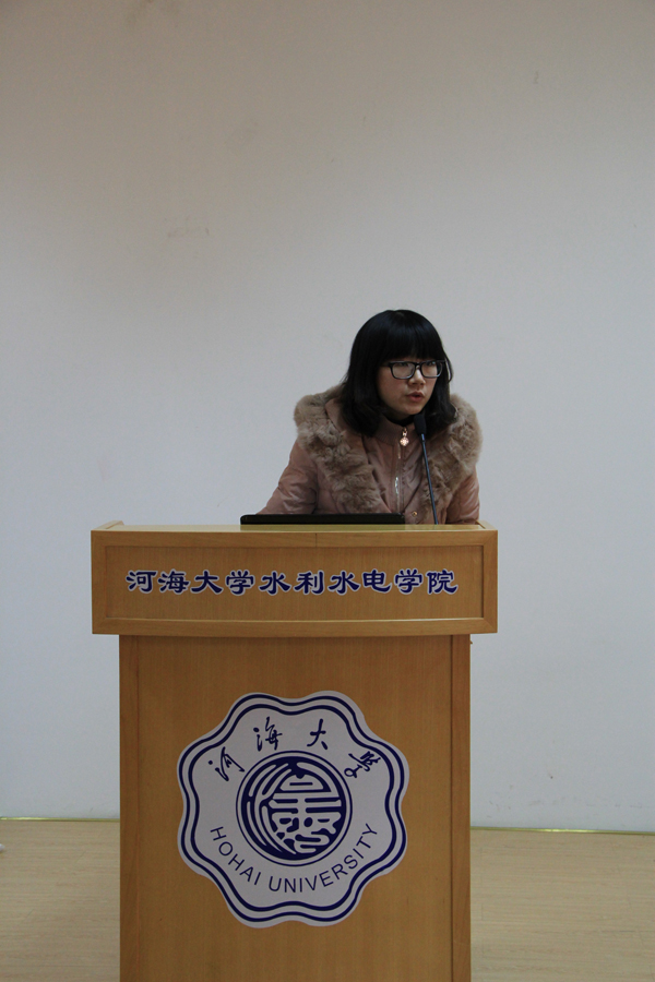 紧接着,赵志涵老师对2013年做了工作总结发言。赵老师指出2013年水电院研究生工作取得了丰硕成果,国家奖学金、潘家铮、张光斗等各重量级单项奖学金连连,这些成绩的取得离不开各位班长与党支书的支持。赵志涵老师还对水电院研究生2013年度开展的学生活动进行了表扬:在金水节系列活动中,水电院承办的河海达人获得了一致好评;在金水节闭幕式上水电院表演的惊鸿舞更是令人惊艳;在“学海争锋”学术交流活动中,博士、硕士积极投入参与交流;此外,本硕博、每月一动以及内部素质讲座等活动都取得了不错的成绩,收到了很好的效果。赵老师感谢学院领导一直以来对JJGirls