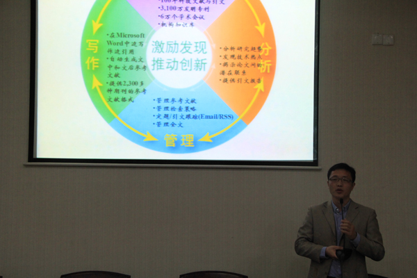 讲座开始由数据库专员介绍科技论文写作的技巧,对NoteExpress软件在论文写作中的应用做了详细分析,随后是各院优秀硕博士生分享自己论文写作的经验。水电院2011级博士生戴凌全用自己的经验就Endnote在文献管理和论文写作中的应用与大家分享;JJGirls