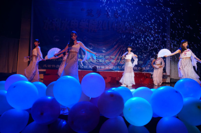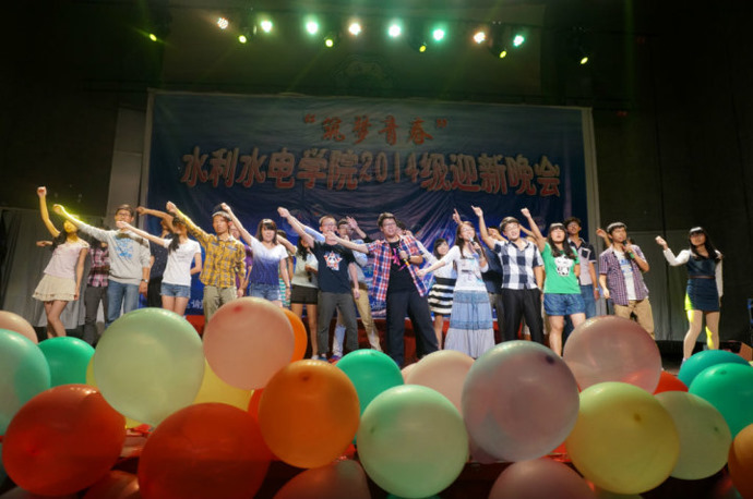在speechless乐队的动感歌曲《creep》中,迎新晚会正式拉开了帷幕。学院老师的舞蹈《化蝶》优雅灵动,歌曲串烧、爵士舞、舞蹈《咏春》洋溢着青春的活力,国防生的大合唱《弹起我心爱的土琵琶》充满力量与激情,洪特鹏的一曲《疼爱》让新生们领略了校园明星的风采。藏族舞蹈《扎西德勒》、冬不拉弹唱、B-BOX口技秀、诗朗诵《如果在河海拥有爱情》等精彩的表演与绚丽闪耀的灯光相结合给观众呈现了精彩的视觉盛宴,迎新晚会在舞台剧《筑梦青春》中落下帷幕。晚会现场座无虚席,气氛欢快热烈。本场晚会给观众带来了无数的欢乐,更给每一个在场的新生留下了深刻的印象,让他们感受到了一个温馨并且充满无数惊喜的水电院。