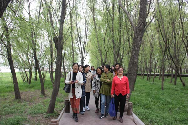 3月29日中午,忙完了上午教学(务)任务的女教工们,在约定的时间来到鱼嘴公园,宁静的公园因我们的到来而热闹,大家下车就迫不急待的拿出手机拍照,看到盛开的海棠,兴奋的驻足拍张留影,看到垂柳招呼来张合影,还摆出各种姿势,两边的柳树散发出淡淡清香,满地是绿油油的青草,沁人心脾。这边走边聊天的走路,轻松又愉快,时间很快就在漫步中过去了。(陶艳芝)
