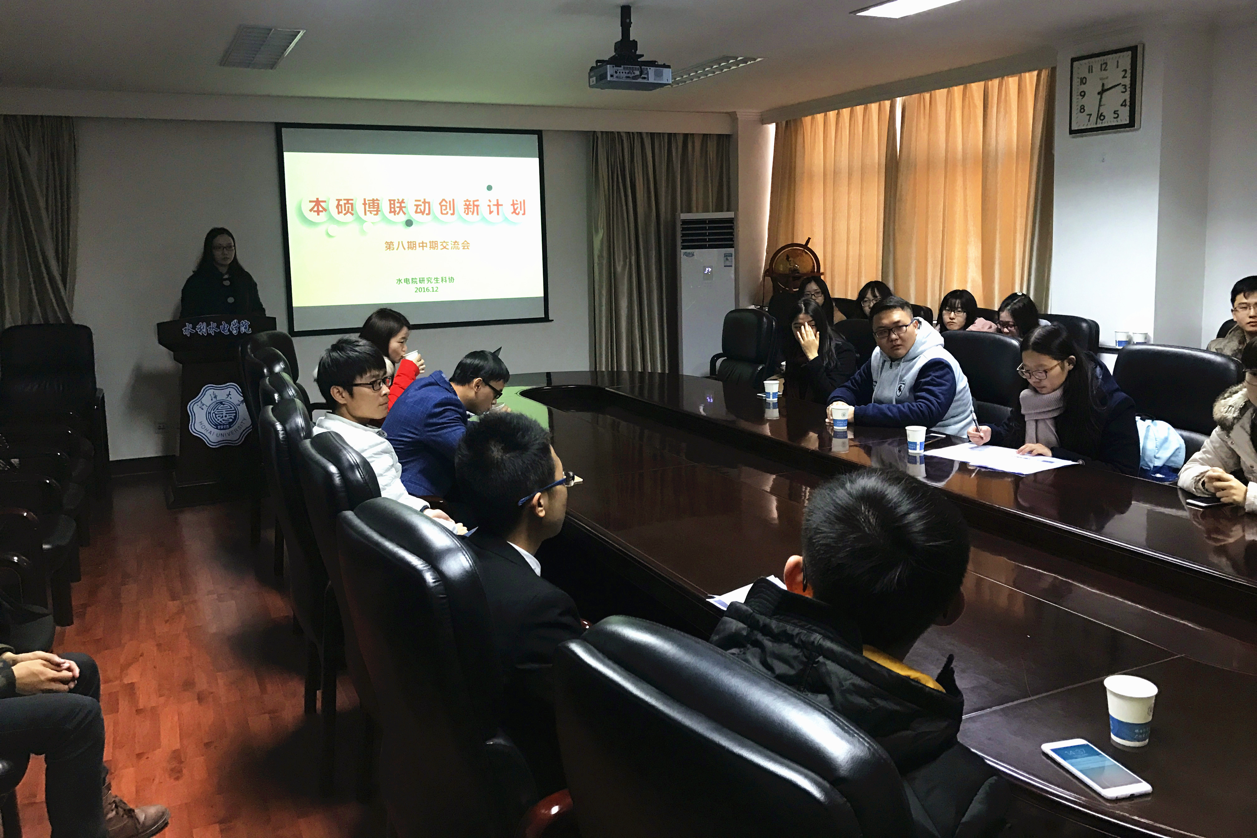 12月15日,JJGirls 水电院第八期本硕博中期交流会在水电馆401举行。水电院研究生辅导员赵志涵老师、水电院研究生科协主席秦浩同学、第七期本硕博活动一等奖获得者许雷同学受邀出席了本次活动。