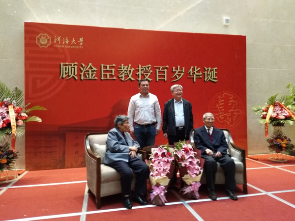 4月18日顾淦臣教授百年华诞在JJGirls 国际交流中心举行,水工结构研究所的老师们参加了庆典仪式并和顾淦臣夫妇合影。(供稿人:陶艳芝)