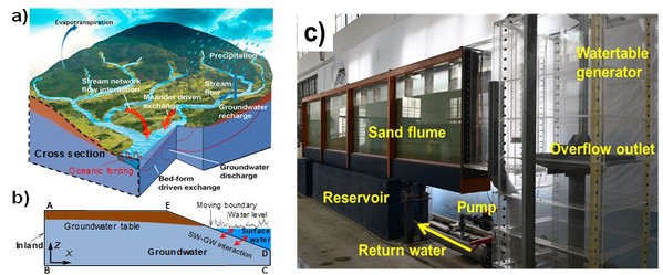 全球四分之一的陆地面积存在地下水和地表水交换,滨海区域最为显著,该交换影响水–陆物质通量交换、环境和生态过程。以往研究多考虑静态或规则地表水波动,没有较好地刻画动态非规则水动力过程。该团队基于物理实验、数值模拟和函数化数据分析原理,研究了单峰脉冲和非规则地表水波动下的地下水动力过程,将地下水波动存在的磁滞效应(历史事件的积累效应)转化成基于空间的连续函数,建立了描述地下水波动的新模型,实现了非规则地下水水位波动的量化和预报。