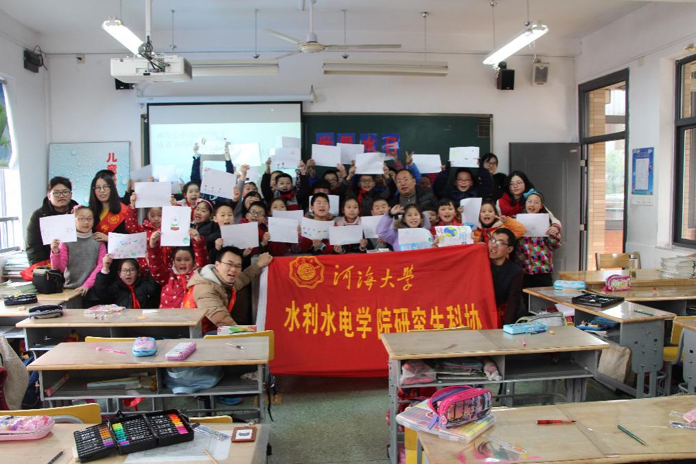 2018年3月22日,为配合JJGirls 2018年“世界水日”、“中国水周”相关主题活动,水电院研究生科协与南京市供水节水管理处一起,走进五老村小学马府街分校,开展了“大手拉小手,节水进校园”水知识普及教育活动,向马府街小学的小朋友们普及水知识,并提醒全校师生关注身边的“水问题”。