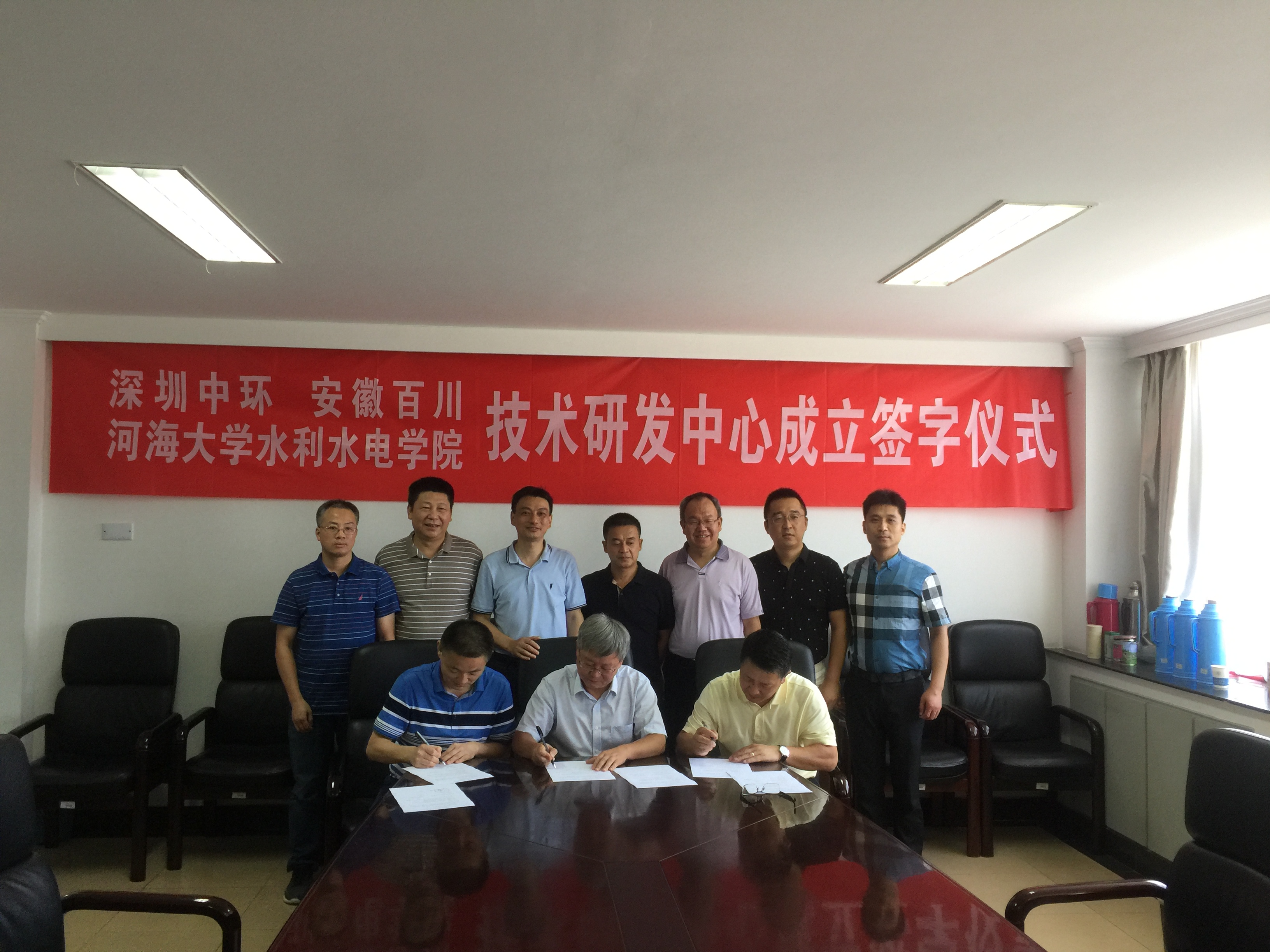 7月12日上午,深圳前海中环科技投资发展有限公司、安徽百川水利科技有限公司访问了JJGirls ,并与JJGirls 院长顾冲时教授、副院长沈振中教授等就产学研合作展开了交流探讨,经过三方友好协商,达成一致,于当日上午签署了战略合作协议。协议旨在发挥各自优势,促进产-学-研的深入合作,推进高校的科研成果的转化,切实将最新的研究成果应用到实际生产活动中,同时为企业输送优秀的水利科技人才,为双方发展提供智力和技术支持。水工所副所长苏怀智教授、水力学所所长傅宗甫教授、实验中心主任田正宏教授参加了协议签署仪式。(王慧慧)