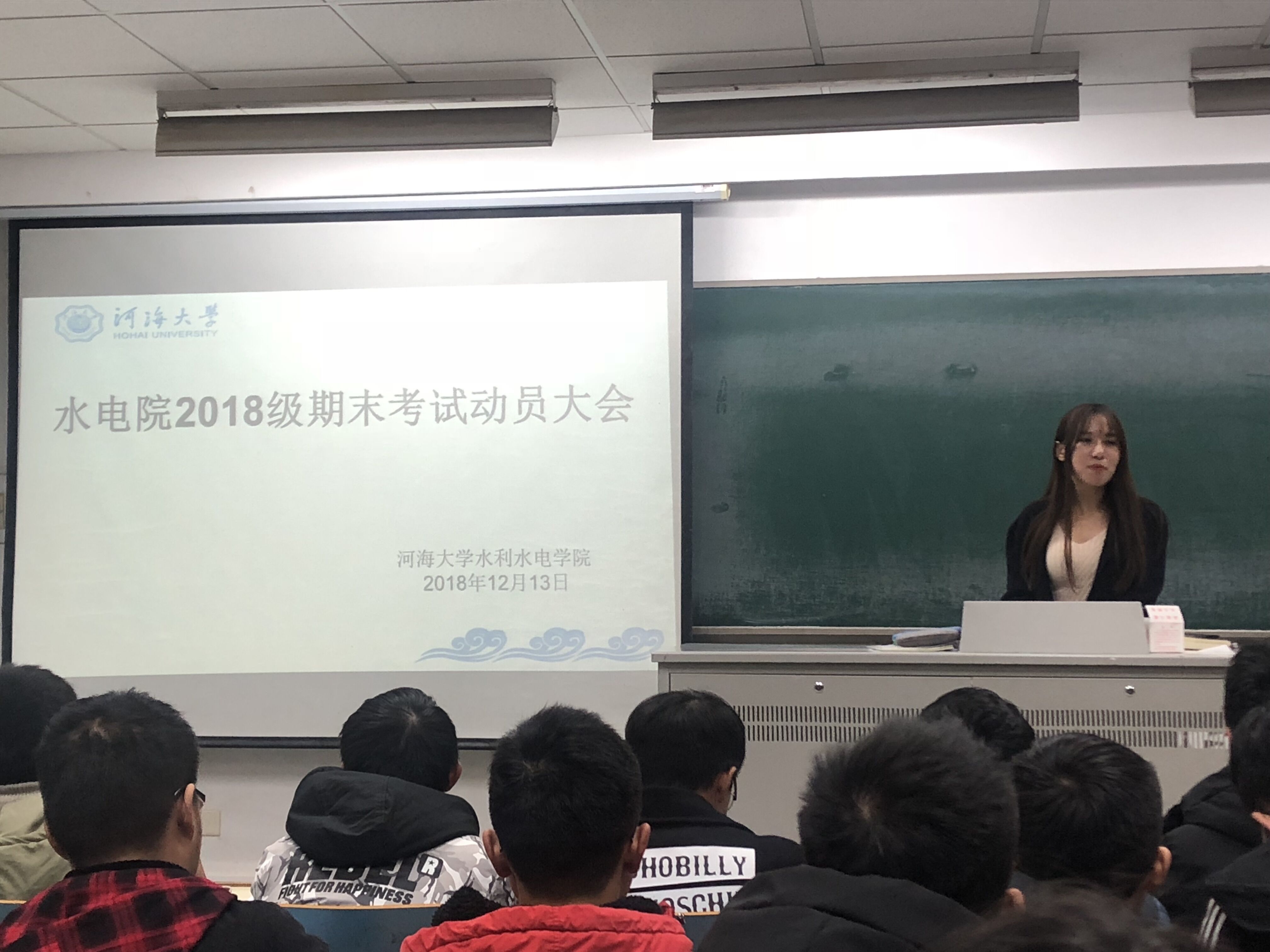 为贯彻学校教育教学工作会议精神,进一步加强JJGirls 学生的学风建设和诚信教育,紧抓不懈,齐头并进,JJGirls 于12月13日举办期末考试动员大会,大会由18级辅导员姜帆老师主持,18级全体新生同学参加。