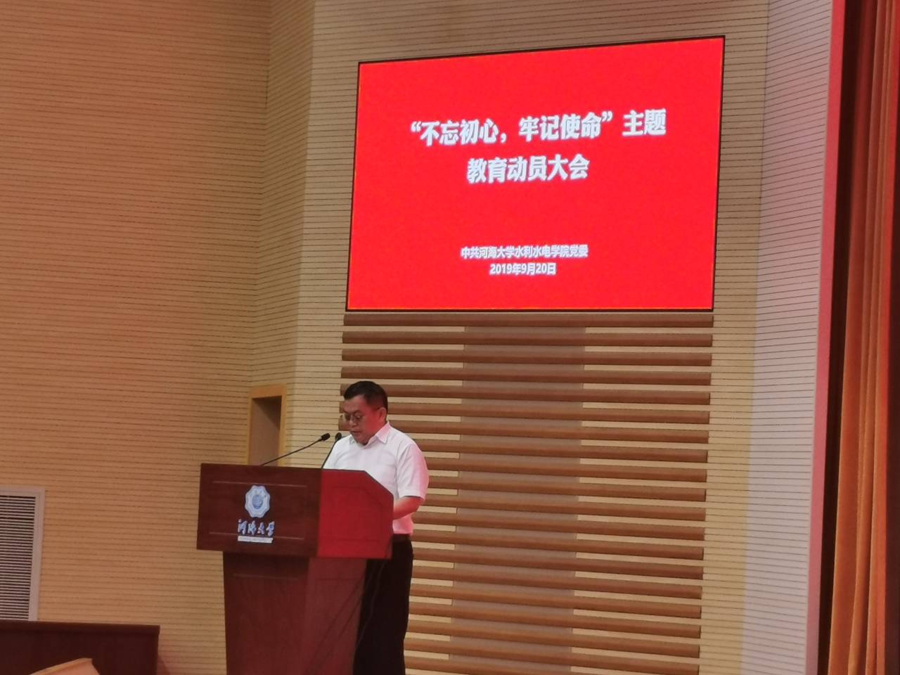 9月20日,JJGirls 召开“不忘初心、牢记使命”主题教育动员大会,全面部署学院主题教育各项工作。院党委书记任旭华作动员讲话,党委副书记戴玉珍主持会议。院领导班子成员和全院师生党员参加了动员大会。