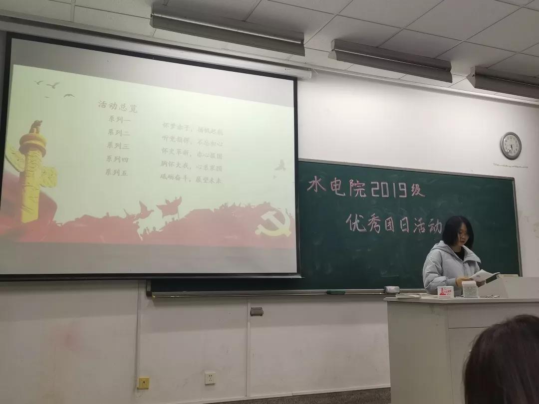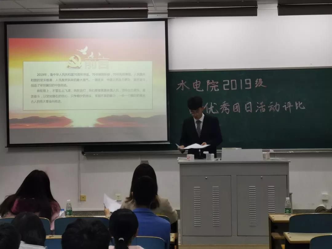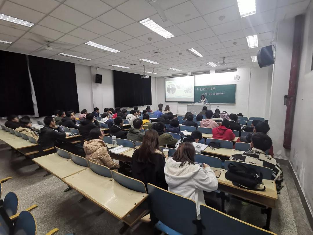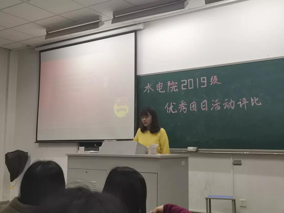 本次评选有幸邀请到2019级水电院辅导员帅雨婷老师 ,2019级环境院辅导员扈雅璐老师与程萌老师和水电院优秀学姐汪心玥作为评委,评选会以幻灯片答辩的形式进行。同时要求年级委及各班班委参加进行观摩学习,为日后认真做好做强团日活动积累宝贵经验。
