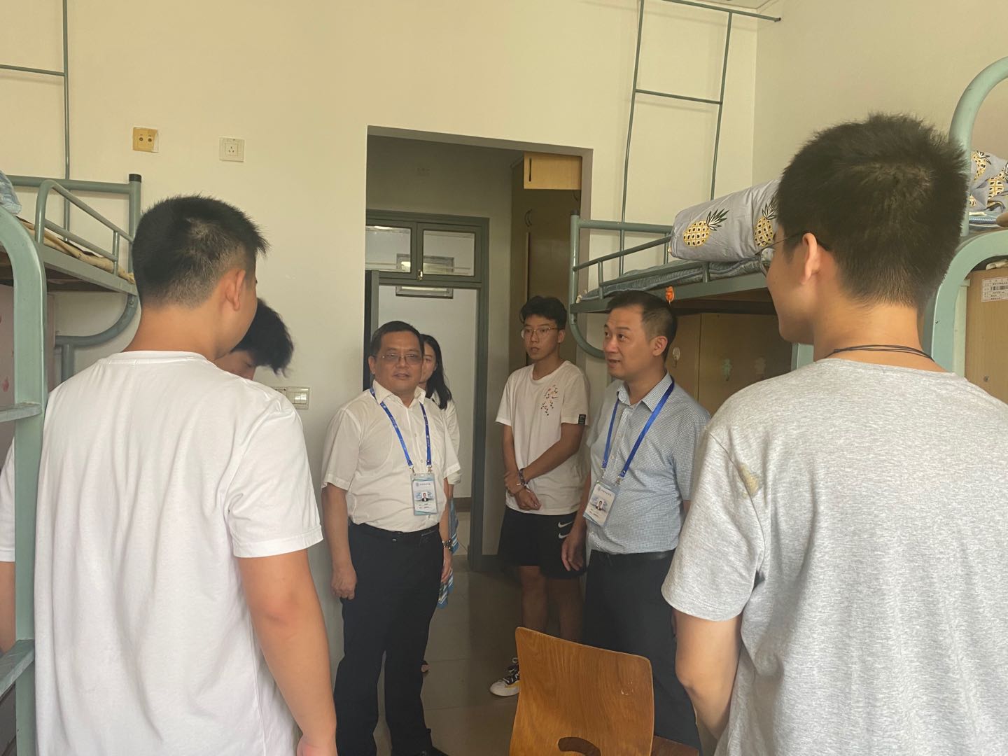 任旭华书记一行来到学生宿舍,查看了新生宿舍基础设施、环境卫生等情况,并深入寝室与同学们亲切交流。任书记代表学院欢迎新同学的到来,亲切询问同学们第一次离开家乡的感受、对今后大学生活的期待等,希望同学们能尽快适应大学集体生活,遵守学校的相关规定。当看到宿舍同学带有《水工结构工程》书籍时,对同学们提前接触专业知识的做法表示鼓励,期待同宿舍同学一起进步,在大学四年共同努力。