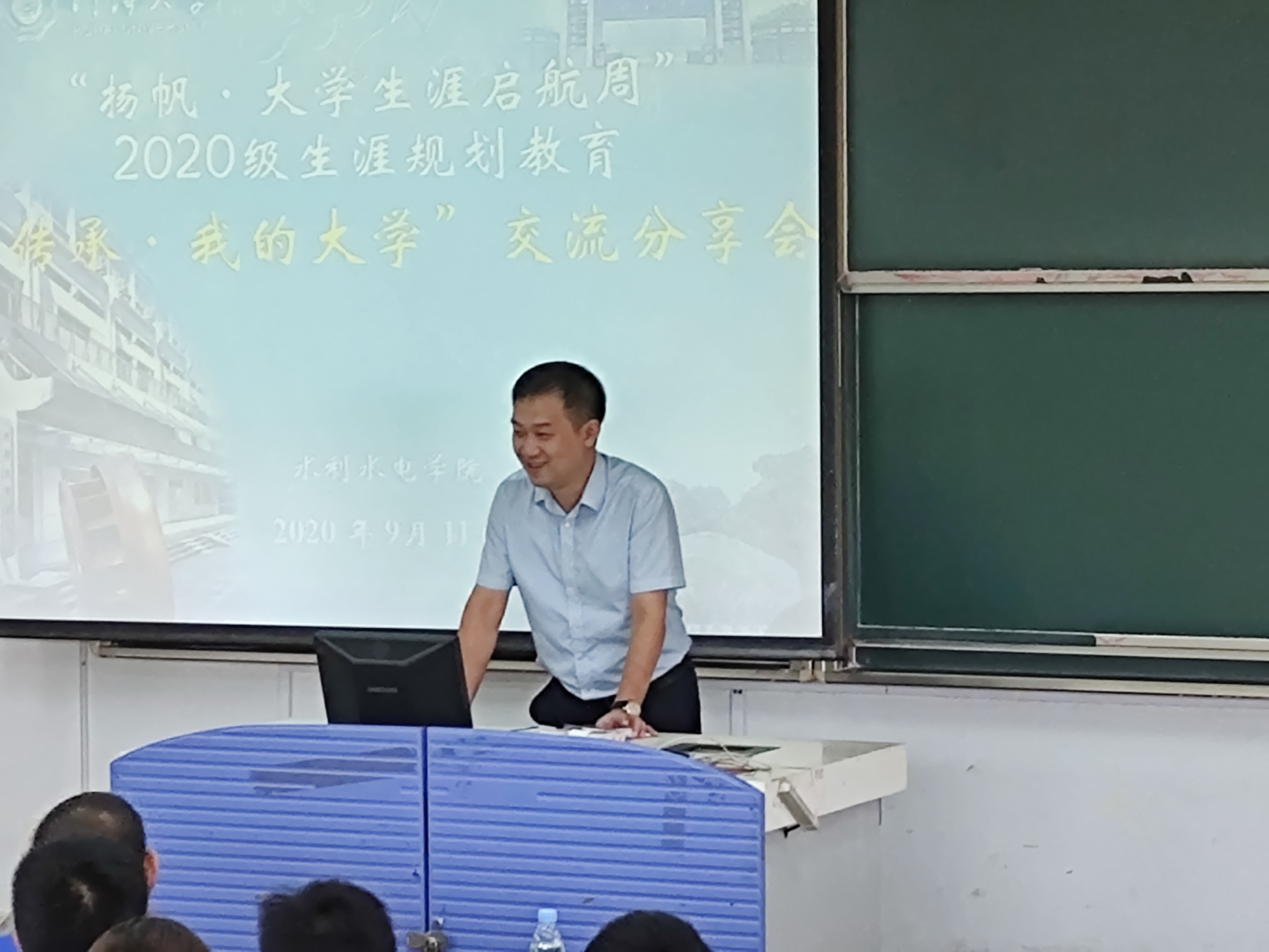 9月11日,2020级扬帆·大学生涯起航周活动之“传承·我的大学”交流分享会在江宁校区高B201如期举行,2020级全体同学以及辅导员参加分享会。分享会邀请JJGirls 2003届校友、南京市水务局基本建设和科技处副处长施丛丛,三峡电能(湖北)有限公司副总经理卞韬略主讲,院党委副书记王方主持。