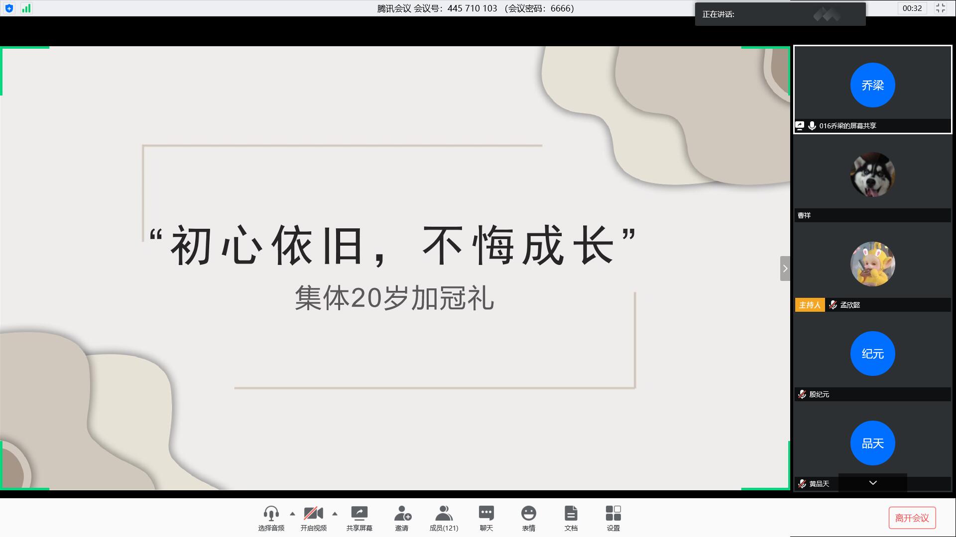张亚琳:PPT和视频上的“加冠”让我恍然间一怔,成人礼的场景历历在目,青春仪式的歌曲还萦绕在耳畔,十岁生日那天写的日记好像还能默念,甚至幼儿园的毕业典礼,刚会走路时从二楼翻到一楼的惨痛经历,转眼,已是加冠之年。很感谢这样一个活动,带着我回看过去,期待未来,我们将一直奔涌,一直往前,希望心中一直是如今的少年模样,未来可期!
