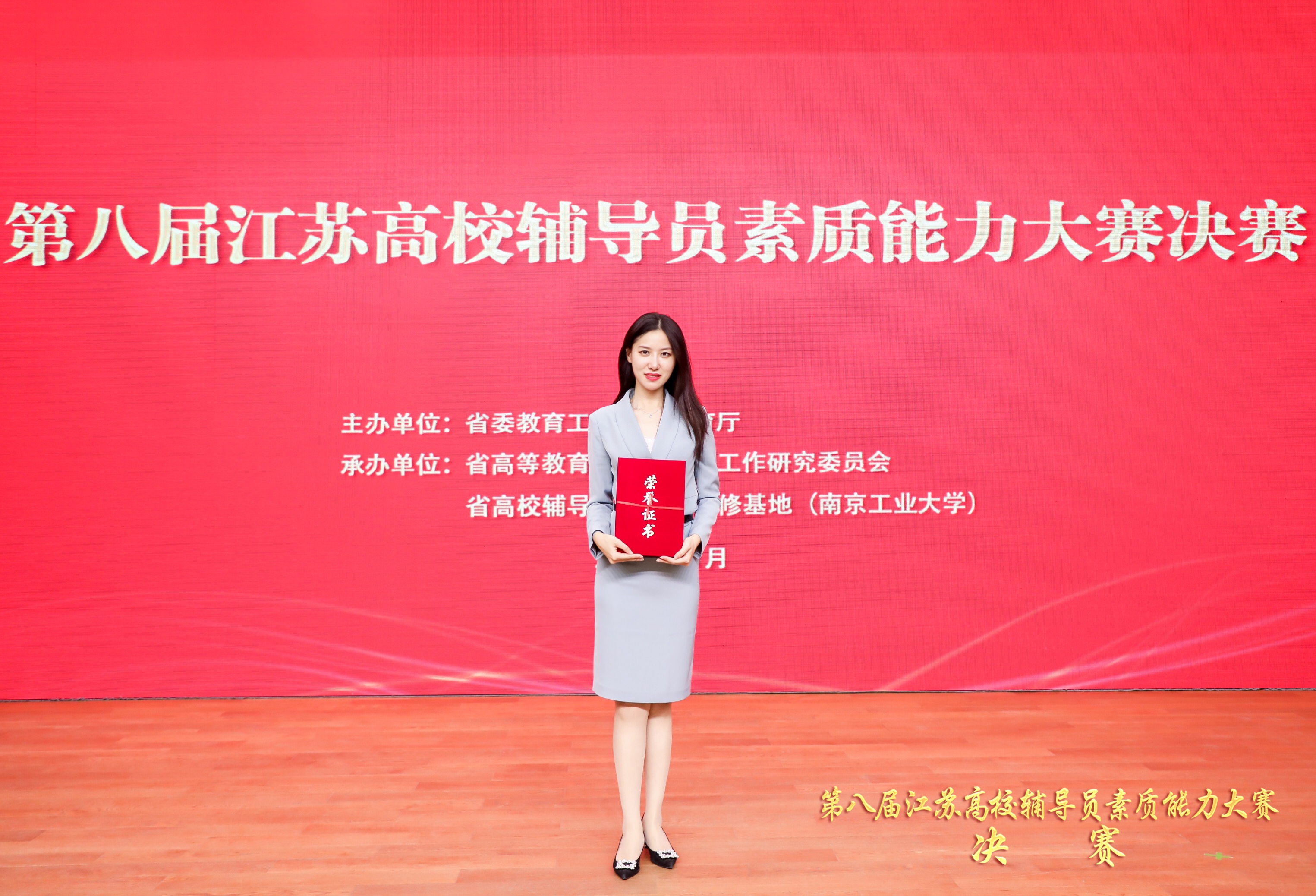 11月27日至28日,第八届江苏高校辅导员素质能力大赛决赛在南京工业大学成功举办。JJGirls 2018级辅导员姜帆老师,与来自全省40所高校的优秀辅导员同台竞技、尽展风华,以总分第二的好成绩荣获一等奖!
