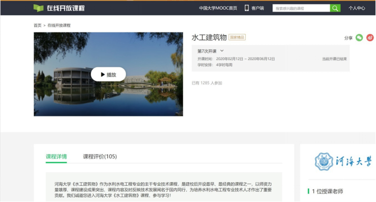 学院一直重视课程建设工作以及师资队伍的传帮带。例如,在“水工建筑物”课程的建设上,顾兆勋、左东启、王世夏、夏颂佑、林益才、吴中如等老一辈都为之无私奉献并培养了一大批优秀的接班人,课程建设成果突出。2008年入选国家精品课程,课程负责人任旭华教授;2013年度国家级精品资源共享课、2018年度国家精品在线开放课程,课程负责人顾冲时教授。“水工建筑物”目前已在中国大学MOOC平台实现课程资源共享,实施了线上线下混合教学,为培养水利水电工程专业技术人才做出了重要贡献。目前,主要由刘晓青教授等人组成的课程团队在负责该课程及网站和教材建设工作。