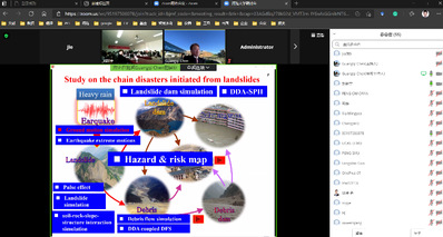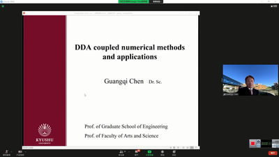 日本九州大学的陈光齐教授应邀做了题为“DDA耦合数值模拟技术的开发及其应用”的主题报告。陈光齐教授介绍了DDA在工程中的应用,包括落石、岩爆、隧道突涌水等,重点介绍了DDA-SPH耦合方法模拟由边坡破坏引起的地质灾害链问题。