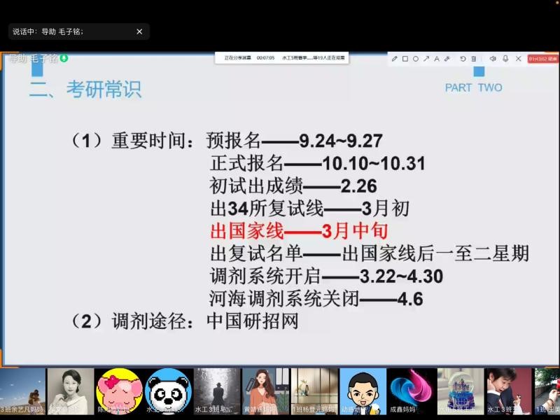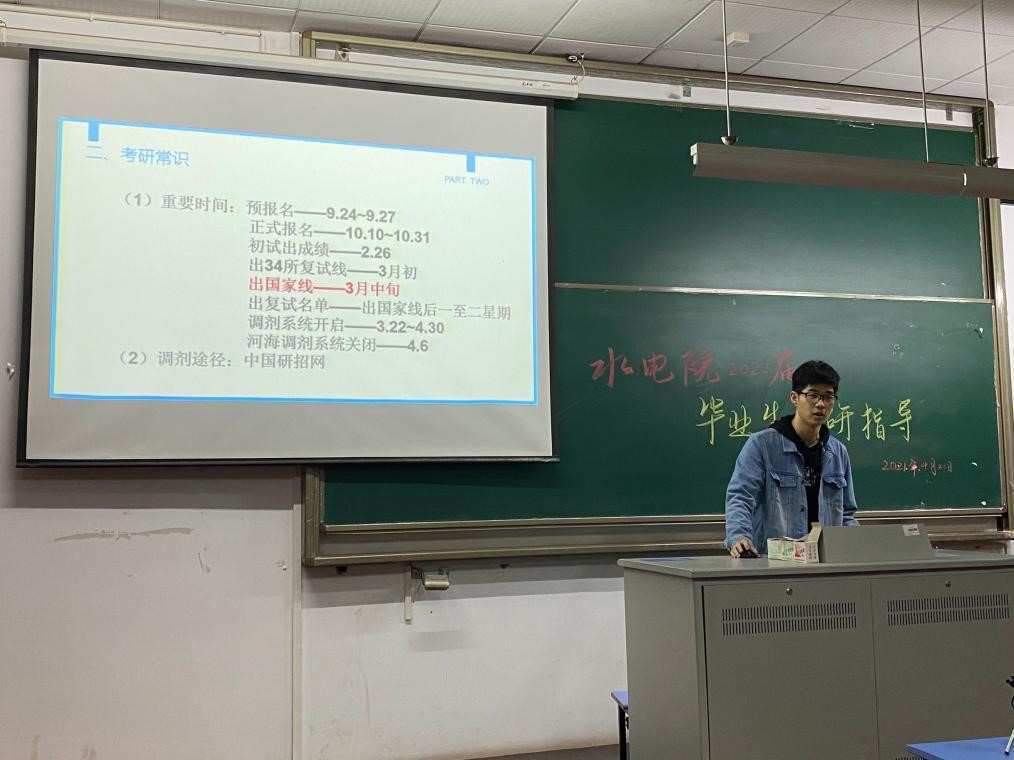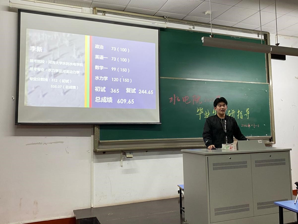 以总分第一被我校水力学及河流动力学录取的李新强调了时间分配问题及拟定学习计划的重要性,与同学们分享了自己高分通过复试的经验,强调了学习中计划的重要性,提出要有计划、有目标地进行学习,帮助同学们做出适合自己的选择。