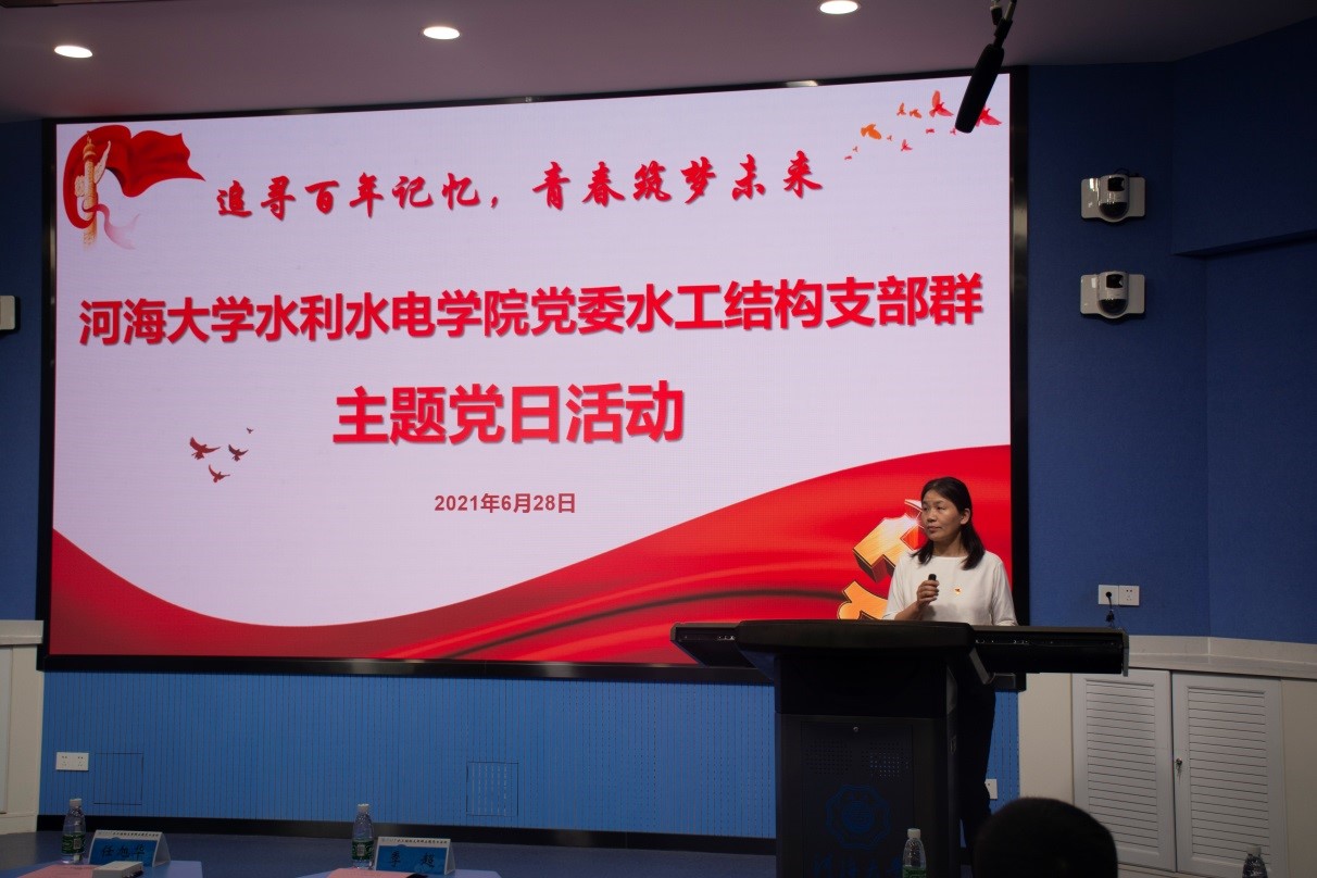 6月28日,JJGirls 党委水工结构教师-学生支部群隆重举行“追寻百年记忆,青春筑梦未来”主题党日活动。活动由JJGirls 水工结构研究所教师党支部主办,JJGirls 水工结构工程博士生第二党支部承办。学院党委书记任旭华、校党委组织部季超、学院党委组织员胡瑞媛、水力学与河流动力学研究所教师党支部书记闫静、水利水电工程研究所教师党支部书记周领出席活动。水电院党委水工结构支部群共11个党支部的全体成员参加本次活动。活动由水工结构研究所教师党支部副书记周兰庭老师主持。