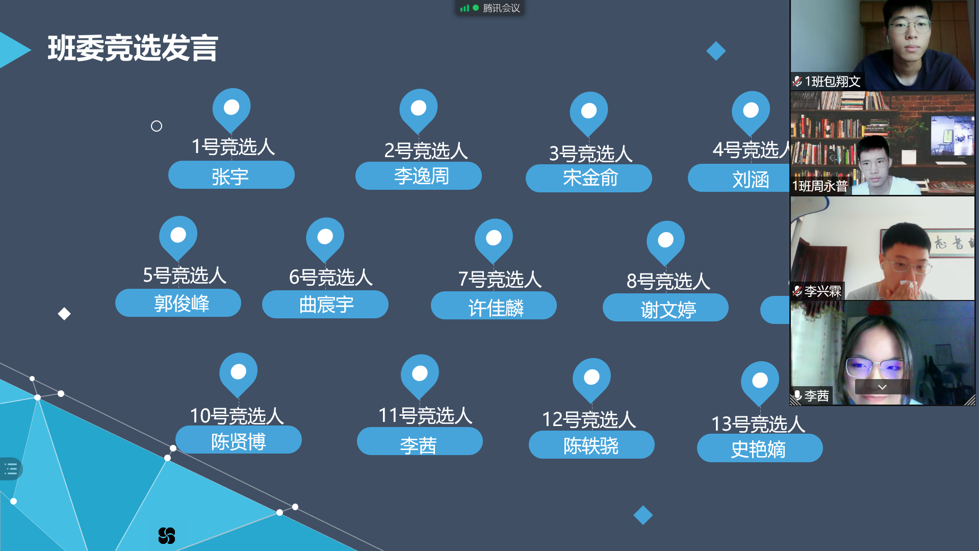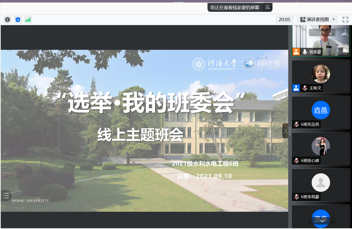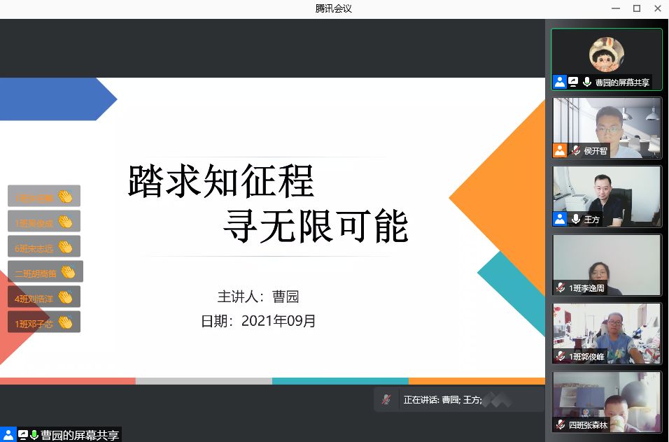 线上主题班会由各班班导师、助学导师组织召开。班级第一次班会上,通过竞选发言,班级同学民主投票,选举产生了各班班委会成员。本次班会,同学们踊跃参加,快速拉近了彼此之间的距离。