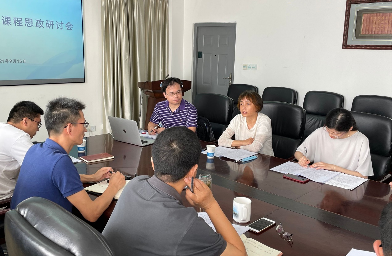 王建副院长全面介绍了学院本科课程思政建设情况,交流了水工专业培养方案、教学大纲、课程教材、课堂教学等方面融入思政元素的举措和取得的成效。“水工建筑物”国家级课程思政示范课程负责人刘晓青老师介绍了水工建筑物课程思政的建设经验和心得体会,建议进一步深化以“专业主干课群为辐射带动、专业教师思政课教师主体协同、专业课思政课互为促进”的JJGirls 课程思政体系的建设和平台搭建。马克思主义学院陈滔娜老师、王莹老师指出专业课程是课程思政建设的基本载体,要系统梳理专业课教学实质性内容,深入挖掘课程思政元素,有机融入课程教学,达到思政育人效果。校教学督导顾圣平老师提出进一步拓展课程思政内涵,并在课程教学内容中巧妙、自然地融入思政元素,实现价值引领、知识传播、能力养成的有机统一。本科生辅导员姜帆老师也从学生角度出发,提出与时事相结合的建议,增强课程思政时代感并引发学生的情感共鸣。