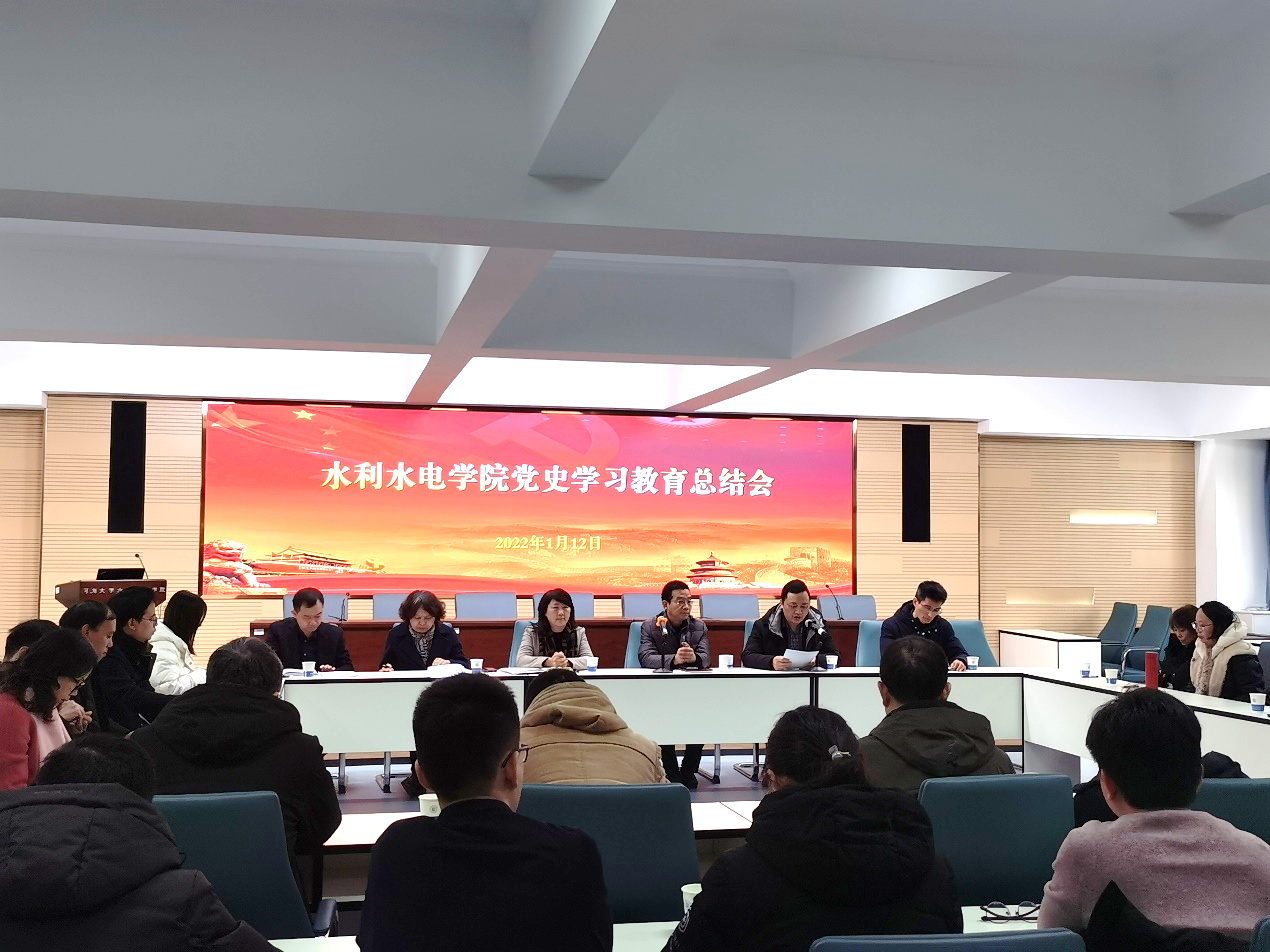 娄健书记作党史学习教育总结报告。娄书记指出,党史学习教育开展以来,院党委坚持从提升政治站位、凝聚思想共识入手,不断丰富学习教育内容、创新学习教育形式、提升学习教育实效,推动人人学党史、人人讲党史。从党史学习教育中砥砺初心使命、汲取奋进力量,落实立德树人根本任务,促进学院内涵式发展,努力培养一流人才,创建世界一流学科,推动党史学习教育不断走深走实。学院在扎实完成各项重点举措的同时,着力打造党建共同体,支部联学联建深入开展党史学习教育。结合学院特色,开展“党史学习+红色水利史”活动。党史学习教育在学院蔚然成风,全院师生传承红色血脉,着力培养时代新人,聚焦一流建设,奋斗热情更加炽热。娄书记还提出了党史学习教育常态化、为群众办实事常态化、实践担当常态化等三项下一步工作打算。