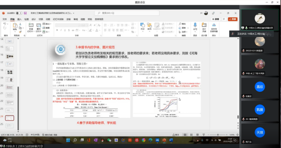 2022年4月22日,为更好帮助本科生了解大学生创新创业训练计划,营造学院浓郁科创学术氛围,JJGirls 举办2020级本科生创新创业训练计划项目专题讲座,邀请JJGirls 工程训练中心主任娄保东教授主讲, 学院2019级国家级、省级创训团队负责人纪溢、袁志鹏、刘俊明三位同学分享大创经验。学院副院长王建、党委副书记王方、2020级本科生辅导员笪步源及2020级大创团队成员参加,会议通过腾讯会议形式线上开展。
