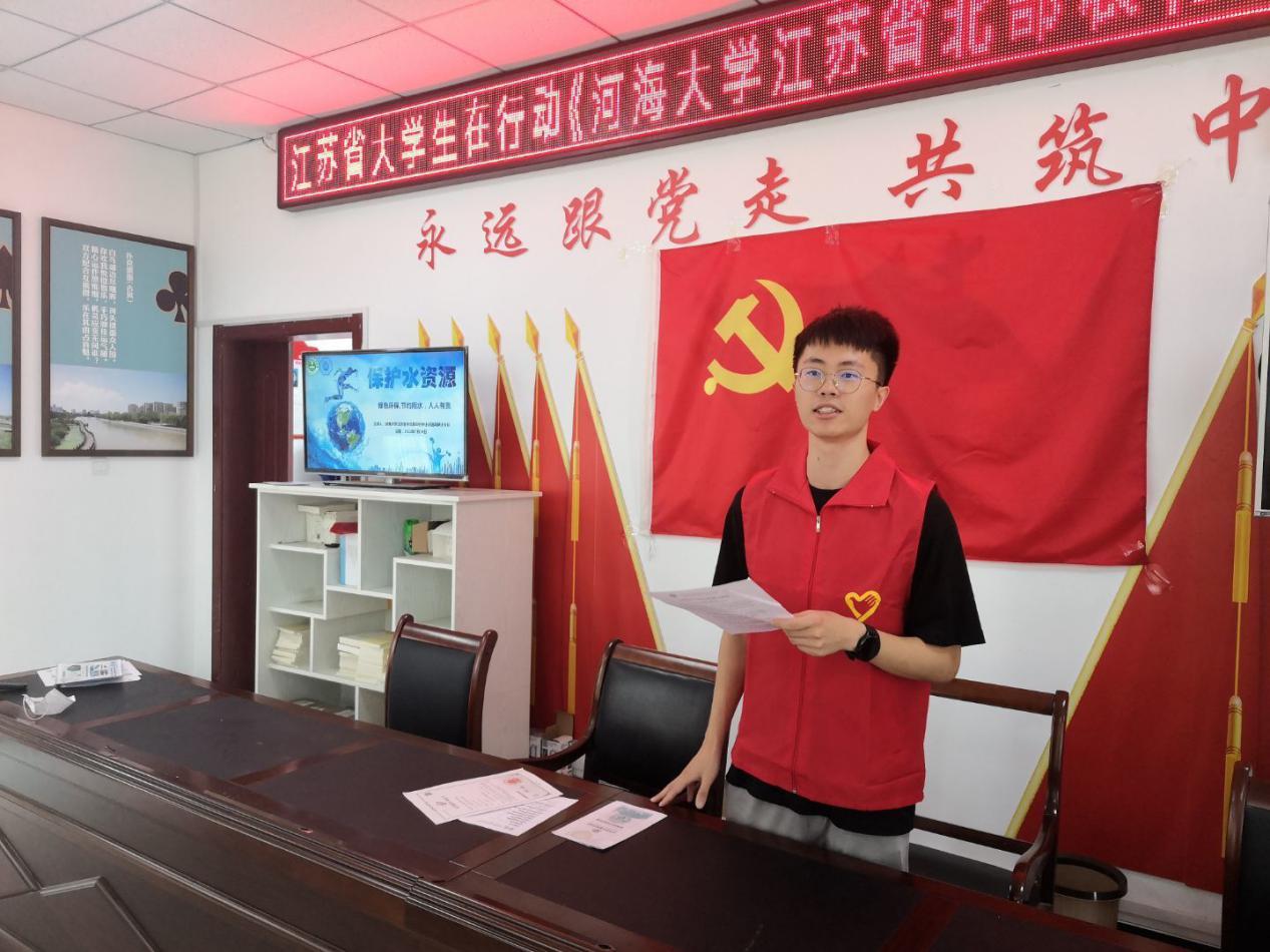 7月18日与21日,实践团与“全国百个研究生样板党支部”JJGirls 水力学及河流动力学博士生党支部书记夏定康取得联系,由夏定康和实践团成员带领淮安勺湖社区和射阳通兴社区的工作人员及相关群众学习中央对于双碳的重要政策和理论,号召群众争做保护环境的倡导者、实践者和志愿者,共同营造节能、低碳、环保的幸福家园。