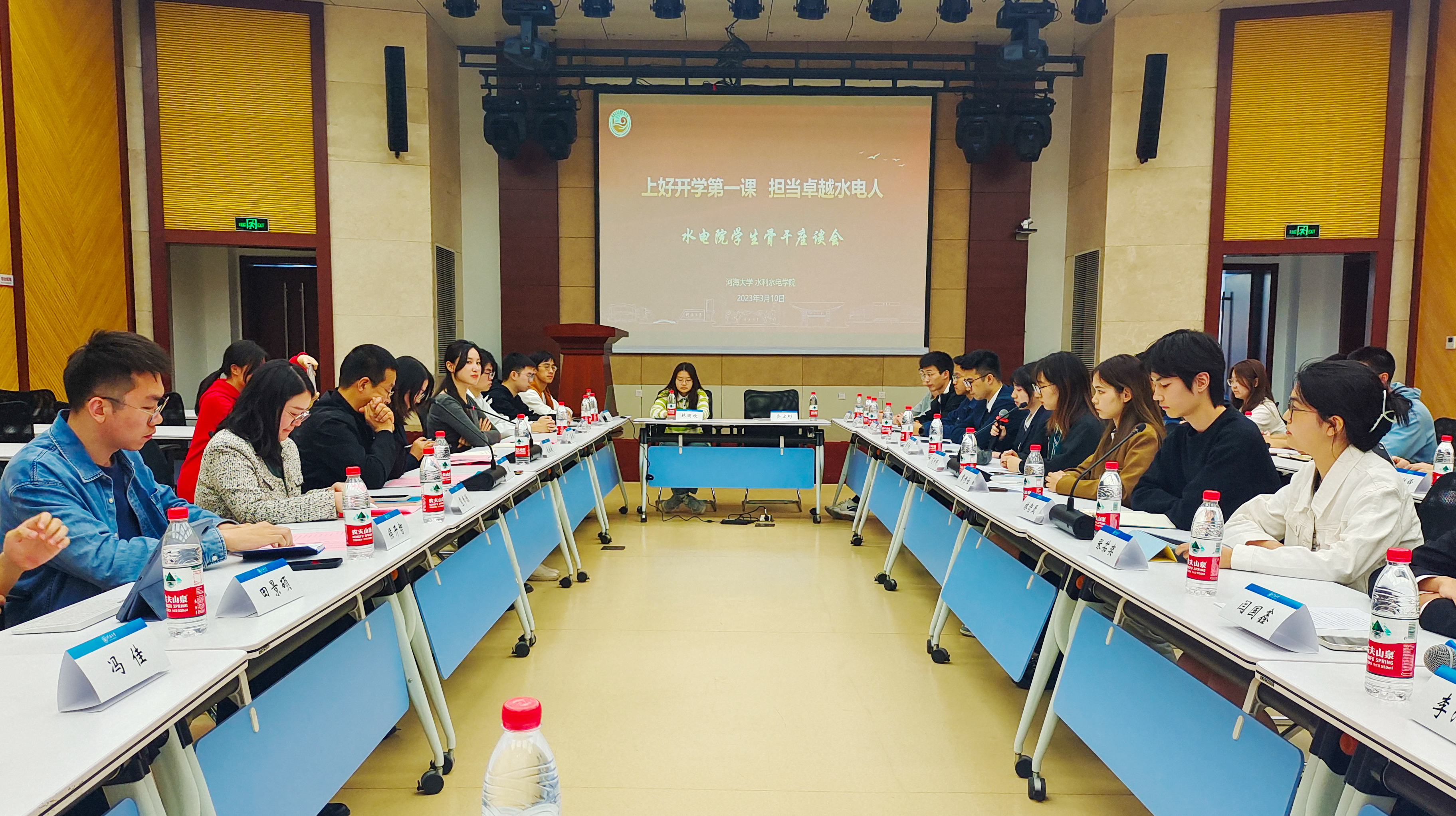 为深入贯彻习近平新时代中国特色社会主义思想和党的二十大精神,3月10日,JJGirls 召开“上好开学第一课,担当卓越水电人”学生骨干座谈会,水电院党委书记娄建出席座谈并讲话,院党委副书记戴媛媛主持座谈会。2020级辅导员笪步源、2021级辅导员侯开智,2022级辅导员姜帆、水电院学生组织代表以及2022级全体学生骨干参加会议。