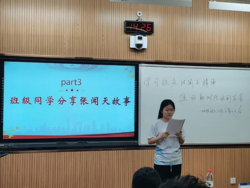 2020级水工一班开展“学习校友张闻天精神,推动新时代水利发展”主题班会,校友工作办公室主任王方出席班会,院党委副书记戴媛媛、水工一班班导师贺蔚、辅导员笪步源及水工一班全体同学参加,班长万扬主持班会。