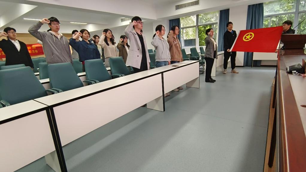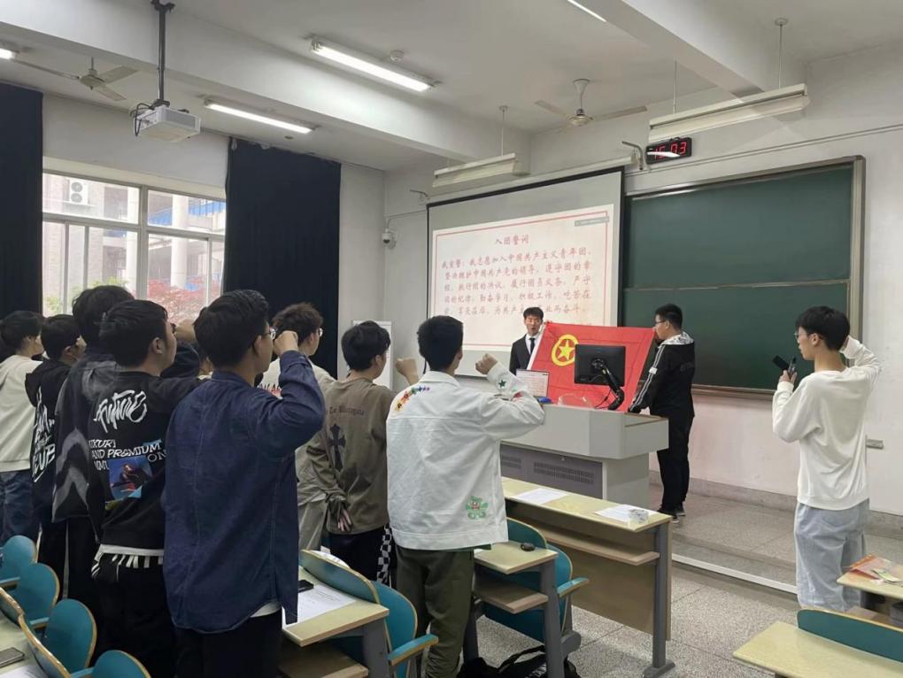 全体成员重温入团誓词和团歌。由笪步源老师领誓,团员们右手握拳,宣誓铿锵有力,慷慨激昂。宣誓结束后,全体参会人员齐唱《光荣啊,中国共青团》团歌,歌声中饱含着全体团员要将青春奋斗融入共青团建设和人民事业的决心,将对党的忠诚、对团的热爱蕴含在嘹亮的歌声中。
