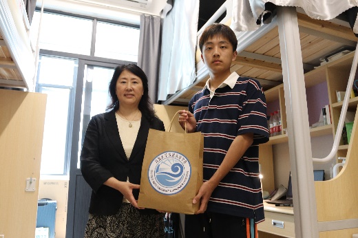 在常州新校区现场,学院领导和老师主动帮助学生搬运收拾行李,并深入宿舍仔细查看学生宿舍整理情况,认真询问学生们的入住体验以及对宿舍生活的期待和建议,关心关注同学们的切实需要和困难。同时,为进一步改善新宿舍居住环境,学院向全体学生发放搬迁礼包和生活用品。