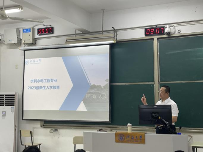 智慧水利专业认知讲座由俞晓东老师主讲。他围绕智慧水利的发展历史、专业内涵、培养计划与课程安排,清晰讲解了目前的国家需求及本专业如何响应国家需求,重点阐述了智慧水利专业虚拟信息工程和现实水利工程相接合的特性,应用多媒体进行了数字孪生流域展示,生动形象进行360°实景内部展示。他就学习内容、教学保障,毕业去向三方面进行介绍,鼓励同学们在学校优良的实验条件中勇于实践创新,争做“信息与水利交流壁垒的中间人”。最后,他展望了智慧水利在环境治理、自动防灾、协同管理方面的光明前景,分享了前辈学长的傲人履历,把“读书破万卷”的“卷”字一语双关地祝福勉励同学们。智慧水利的新生同学们一定能先人一步打好基础、摸清方向、创新发展,在接下来的学习中获得满意的硕果。