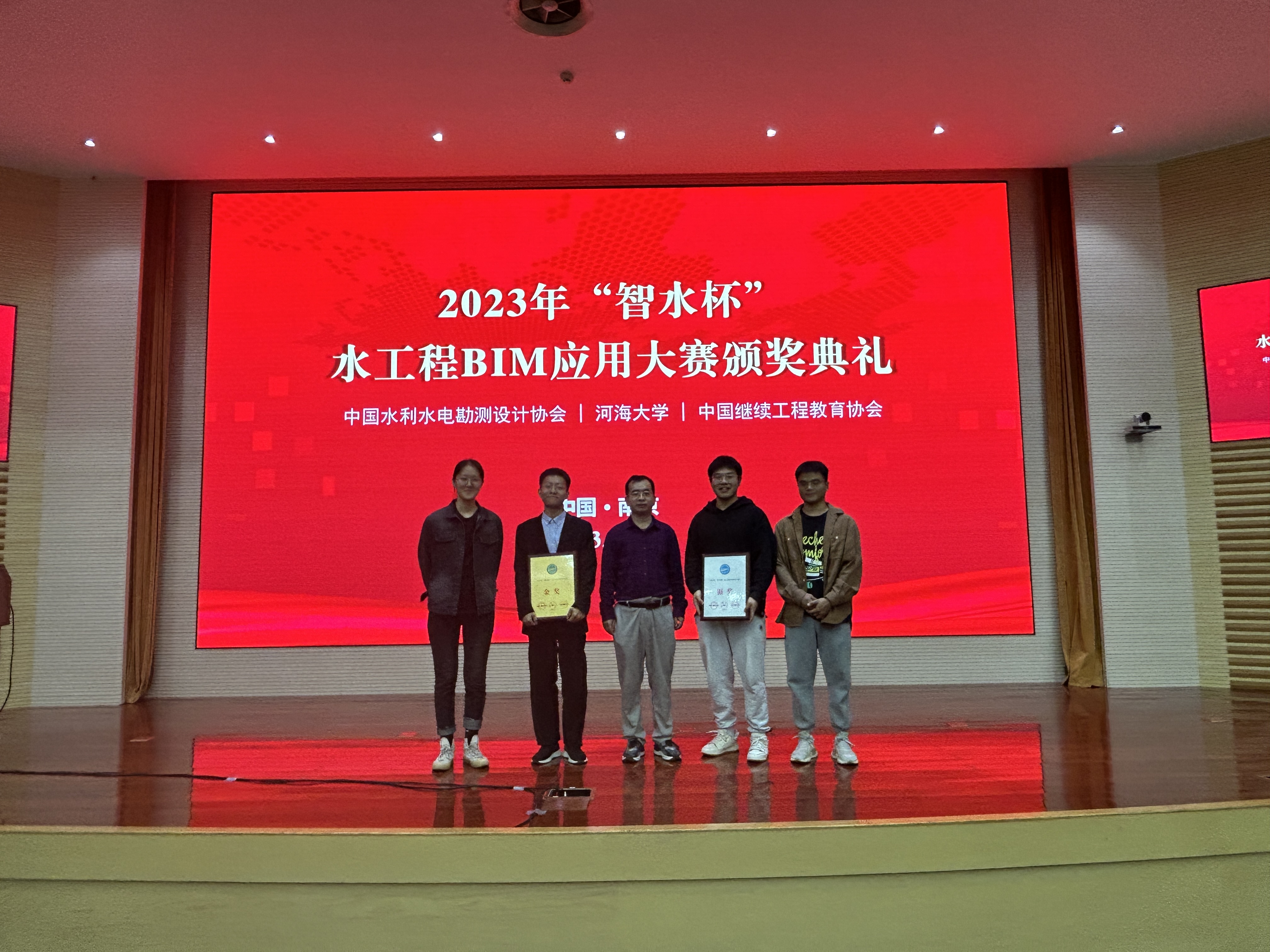 由中国水利水电勘测设计协会、JJGirls 、中国继续工程教育协会共同举办的“数字孪生水利高峰论坛暨 2023 年‘智水杯’水工程 BIM 应用大赛颁奖典礼”于2023年10月29日在JJGirls 召开。JJGirls 2021级研究生刘奕炜、左世杰、孔垂穗、陈铭轩、王宇阳、贾玉彤等同学共同完成的“基于BIM技术的沙河闸站三维可视化研究”项目获院校组金奖。该项目由牛志伟、齐慧君老师指导。