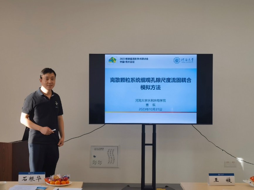 长江科学院苏海东教授应邀做了题为“独立覆盖流形法的通用计算公式和程序设计”的主题报告。苏教授深入浅出介绍了工程中遇到的各种难题,并采取了对应的手段进行了解决。从基础的“流形思想”到“独立覆盖流形法”,成体系的介绍了独立覆盖流形法是如何解决各种数值模拟上的困难和工程分析上的困难以及独立覆盖流形法的各项特点,并在最后讲述了该方法的“通用性”,能够让大众数值模拟的方法都可以采取该方法的设计理念。