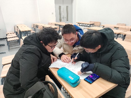 尽管期末考试阶段天气寒冷,但本着“天寒不寒心,学习互相帮”的理念,我与对接宿舍在宿舍内开展了复习,以书本回顾、知识点梳理、例题讲解三种形式为即将到来的期末考试做了充足准备,在寒冷的天气中也可以养成良好的学习习惯。