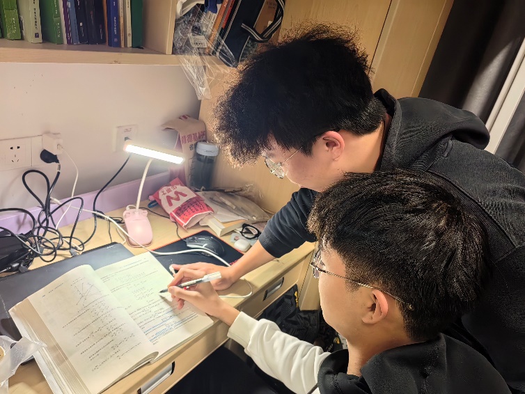 2022级首批14位预备党员在期末备考阶段深入各结对宿舍开展学习帮扶助力活动。