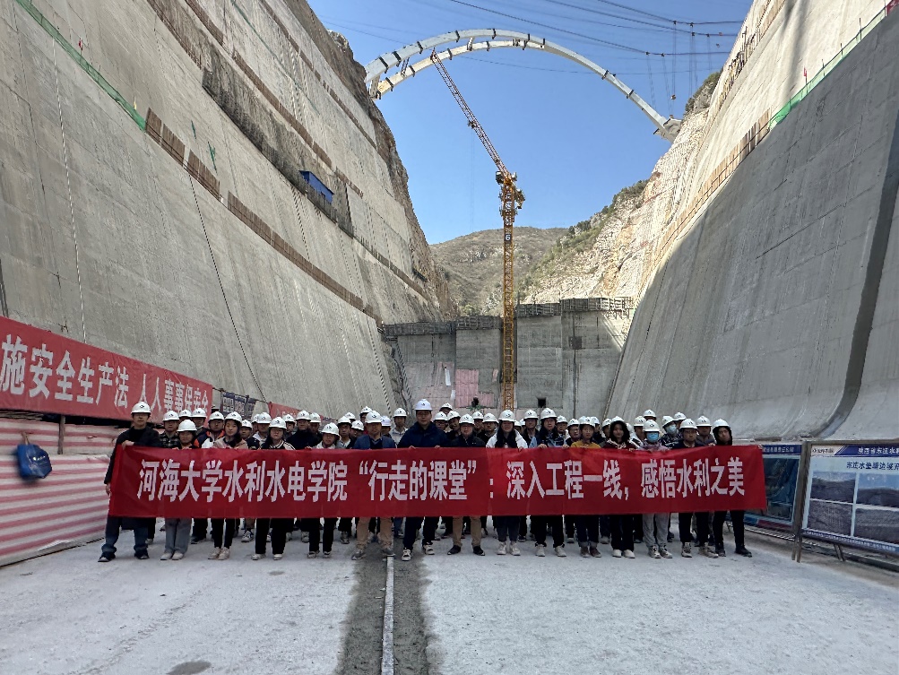 身临现场,亲眼目睹正在建设的水利工程,同学们无不被工程的巨大体量所震撼。巍巍壮观的双曲拱坝、盘根错节的地下洞室、井然有序的拌和系统、充满智慧的Y字形桥梁,当书本上的知识活灵活现地出现在面前时,同学们被这大气磅礴,雄伟壮丽的工程深深震撼了,目之所向一土一木,都彰显着水利人的骄傲,一种身为水利人为国家建设做出贡献的自豪感与成就感油然而生。