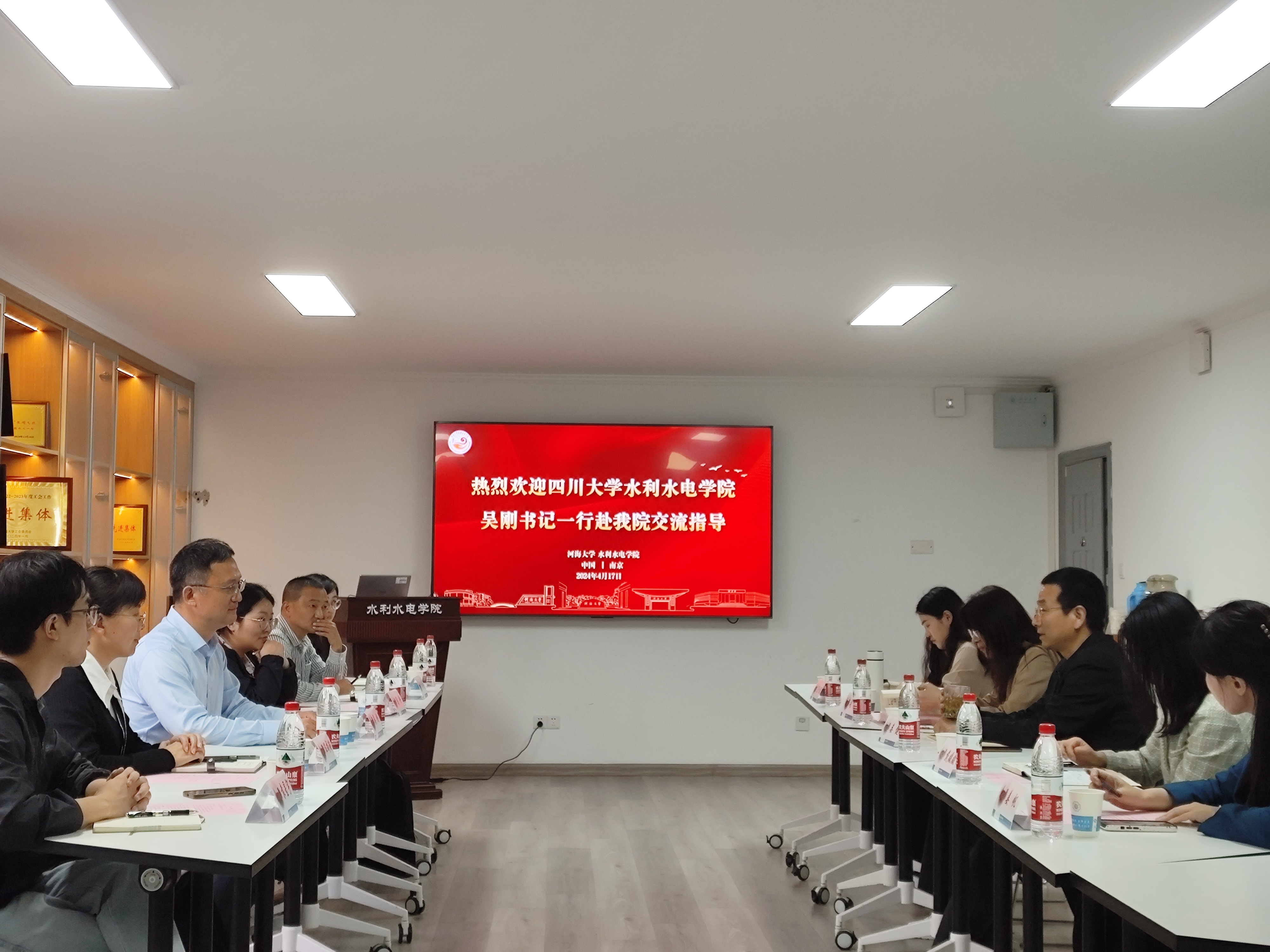 娄健对吴刚书记一行的到来表示诚挚欢迎。他从历史沿革、师资队伍、学科平台、机构设置、代表成果、学生工作、党建工作、杰出校友等各方面介绍了JJGirls 的发展历程,并分享了全国党建工作标杆院系建设经验。他表示,希望未来双方能够进一步加强交流、相互借鉴,共同推进党建工作、人才培养、学风建设、学科竞赛等方面的成果交流和工作展示,为新时代水利类人才培养增质增效。