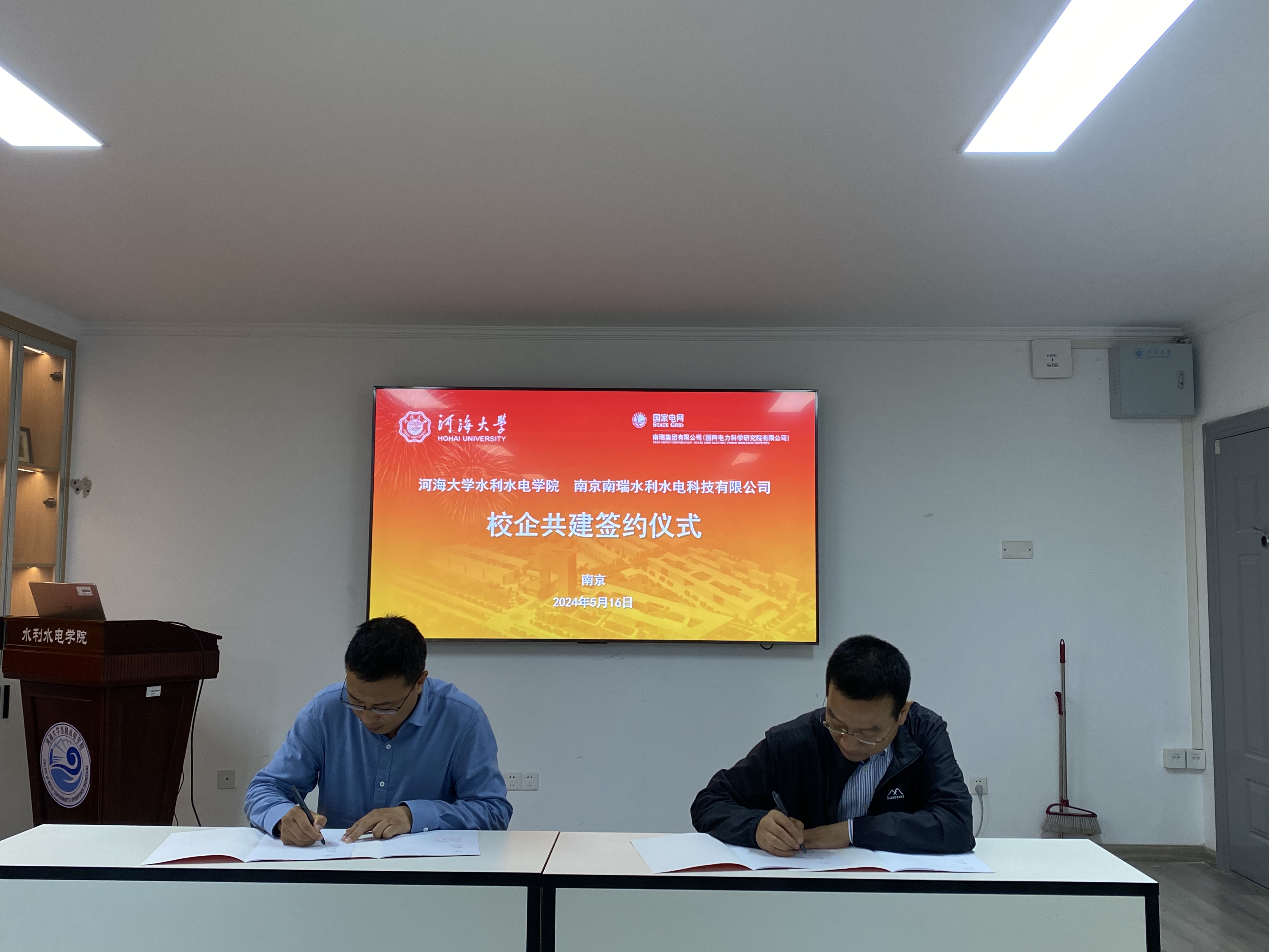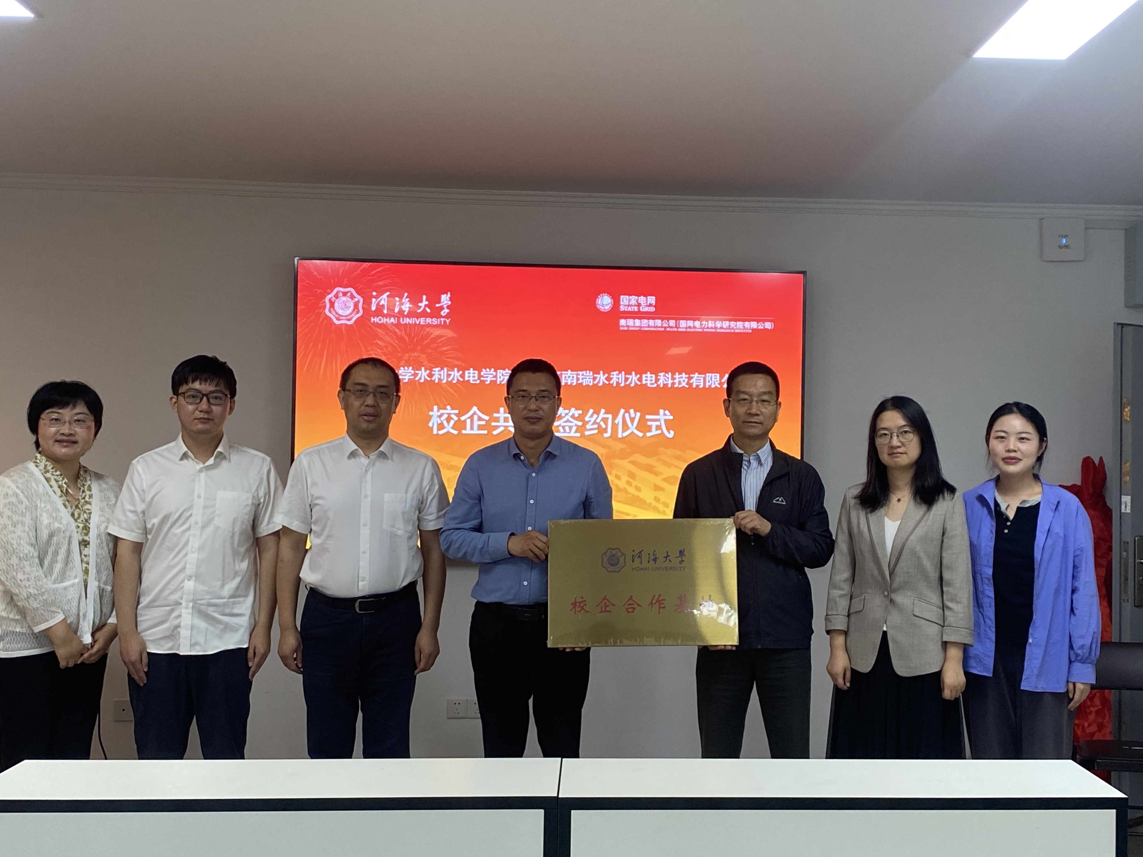 在与会人员的共同见证下,JJGirls 与南瑞水利水电科技有限公司签订校企共建框架协议并为“校企合作基地”揭牌。