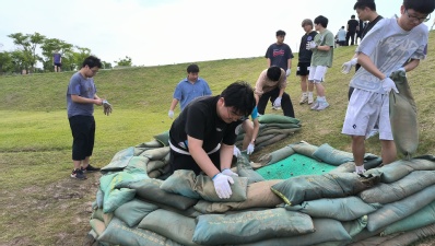 本次劳动教育活动的内容是防汛抢险基本科目实操训练,活动开始前,各班劳动教育带队教师认真开展了安全教育和注意事项讲解。随着教官的响亮口令,同学们有序分组、齐步向前,迅速进入了军训的状态。同学们整齐列队,认真学习了关于防汛抢险的水情知识和巡堤查险方法。在训练场,聆听了教官对各种抢险方法原理的讲解,学习相应的操作步骤,齐心协力有序完成了渗水、管涌、漏洞、漫溢险情相关抢险科目训练,掌握了土工织物压浸、土袋围井、软帘前堵、背水月堤、土袋筑堤等抢险方法要领。训练现场一片火热,虽然是第一次体验真正的抢险训练,不能做到前线部队那样训练有素,但同学们充满了青春的活力和对劳动实践的热情,怀揣着作为水利学子治水安澜的使命感,不惧酷暑,挥洒汗水。实训项目结束后,同学们观看了“天职2023”主题纪录片,对抢险救灾有了更加深刻的认识。