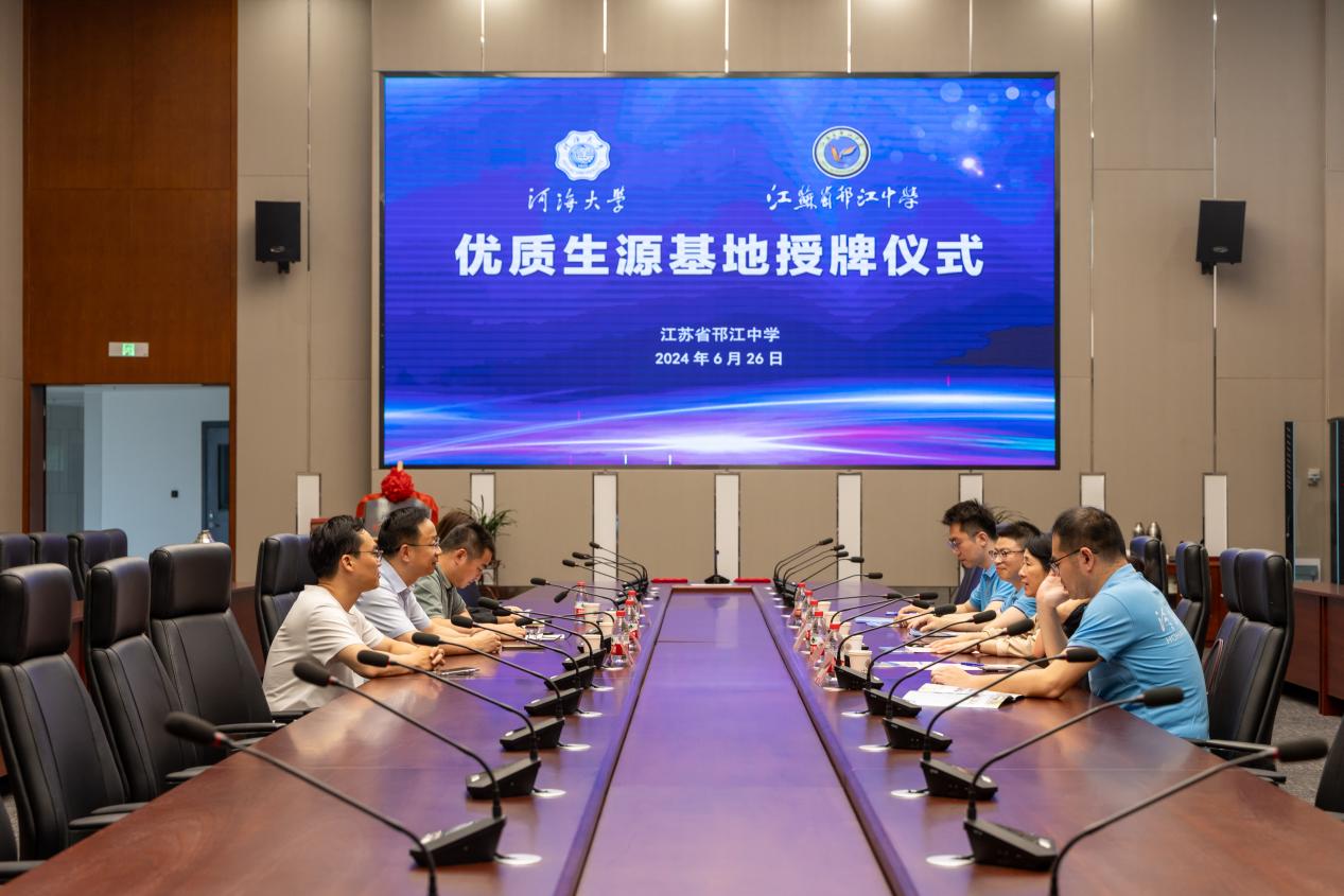 江苏省扬州中学、江苏省邗江中学、扬州大学附属中学校领导出席座谈,并表示“优质生源基地”的挂牌,既是荣誉也是责任,学校将更加努力,为河海大学培养输送更多优秀学子。他们期待通过两校深度合作,共享教育资源,共谋合作发展,拓展基础教育和高等教育的融合渠道和路径,为国家和社会输送更多品学兼优的高素质人才。