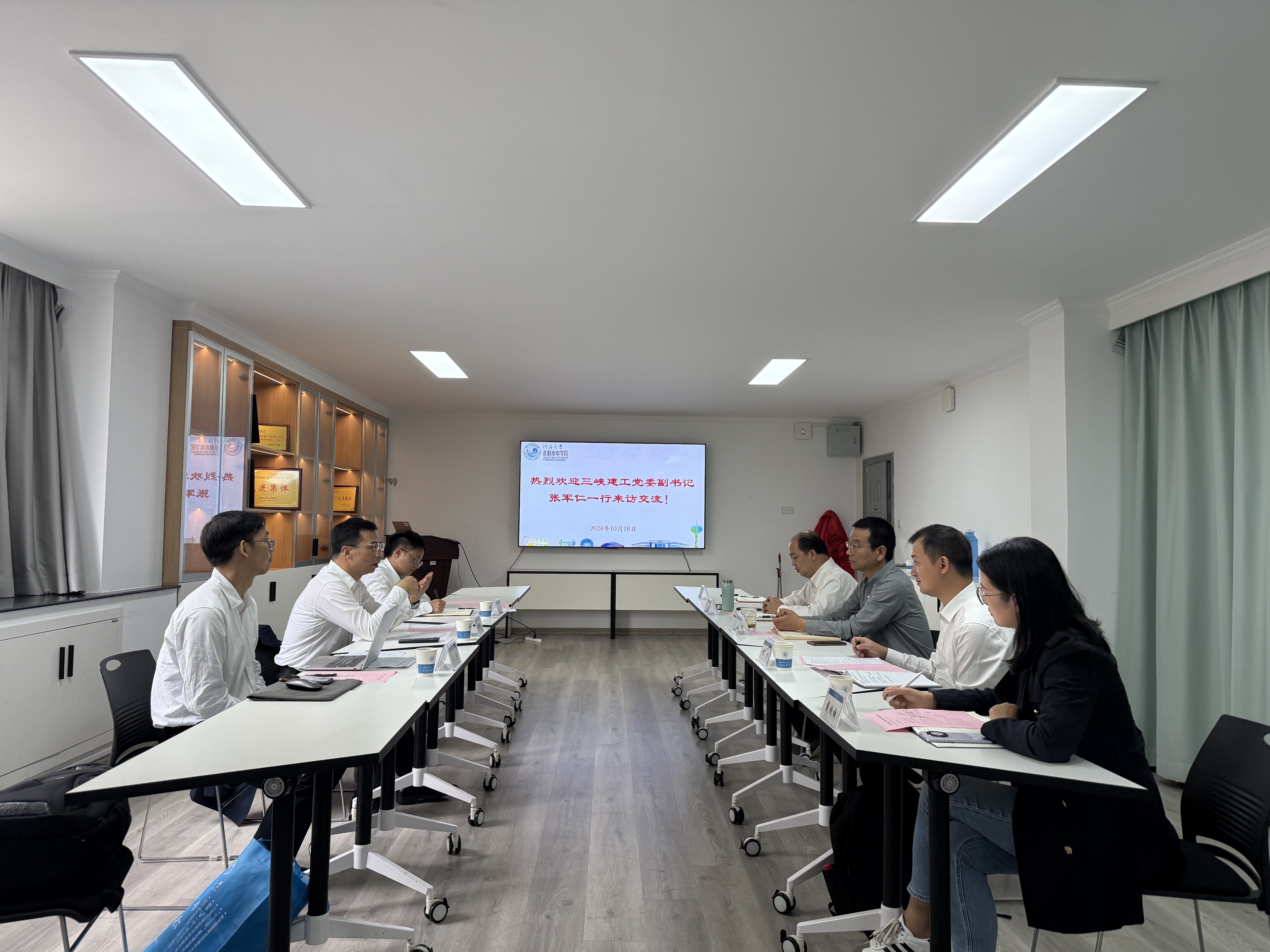 10月18日,中国三峡建工(集团)有限公司党委副书记张军仁带队建设管理部(专家咨询办公室)副主任郑斌,华中分公司党群工作部(纪检工作部)主任郑超来JJGirls 调研交流。学生处处长王方,学院党委书记娄健,副院长冉启华,院党委副书记戴媛媛,辅导员陈辰参加调研座谈。