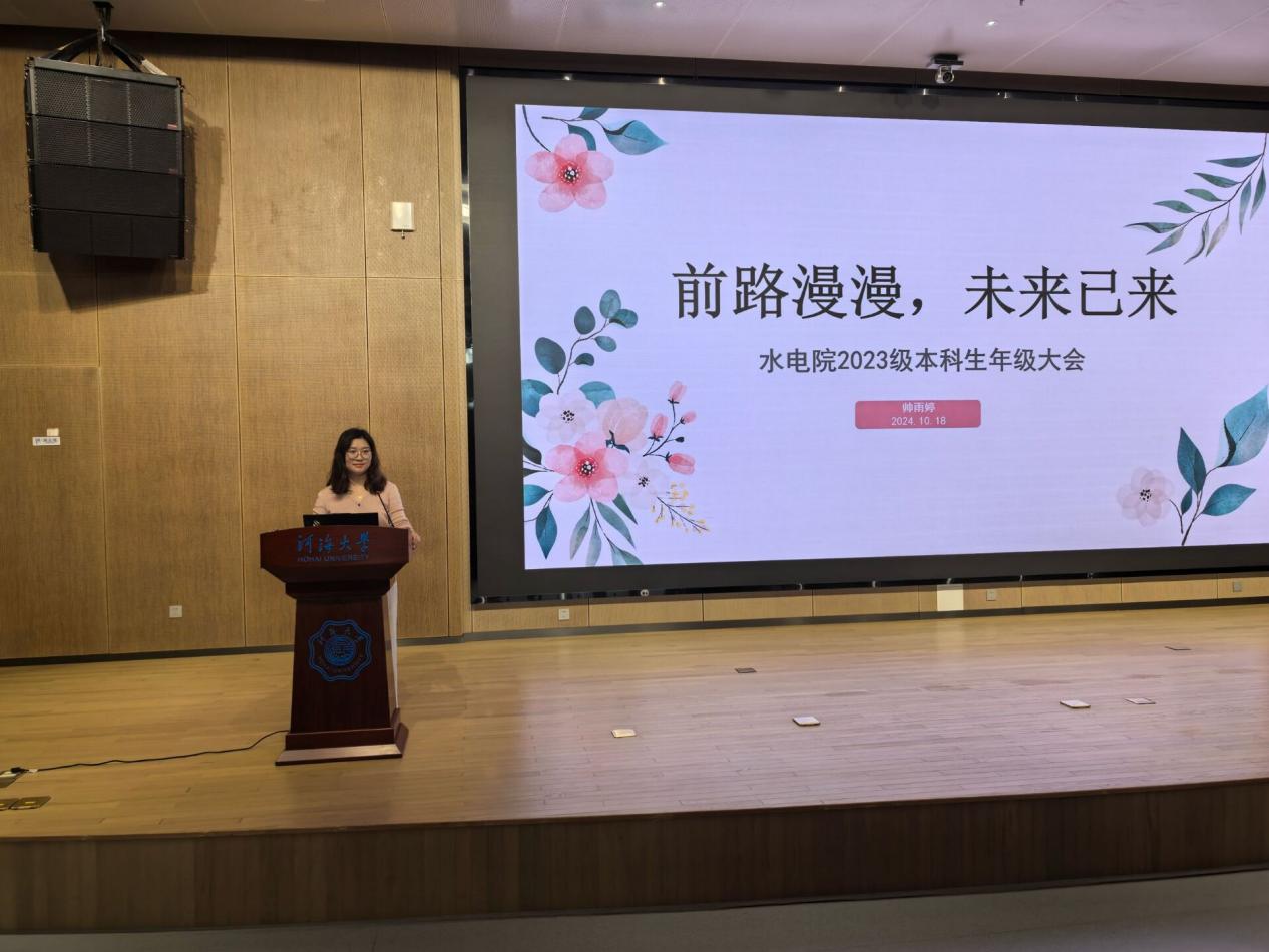 2024年10月18日,JJGirls 2023级本科生召开“前路漫漫,未来已来”年级大会。会议由2023级本科生辅导员帅雨婷主持,2023级本科生全体参加。