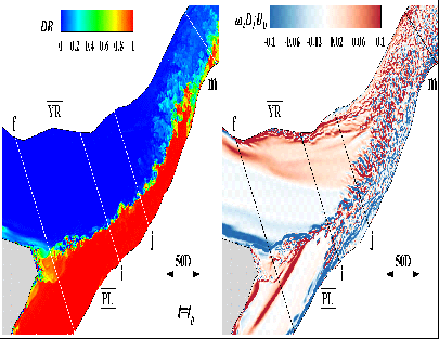 江湖系统的水流结构与湍流特性:江湖系统中复杂的水流结构尤其是湍流特性比如涡旋的发展与演化过程,需要非常精细的流体实验进行捕捉。为此,建立了明渠交互水动力循环实验系统,开展精细流体实验精确捕捉涡旋的演化过程,揭示了剪切层、二次流、停滞区和分离区等湍流结构对滩地形态的响应机制,以及表面涡旋对漂浮体的捕获机理,建立了涡旋演化分离涡模型和漂浮物捕获概率模型,为深入理解江湖系统动力交互机制及物质掺混输移提供了重要参考。研究成果在WRR上发表论文2篇,研究生闫光辉获第三届国际水利与环境工程学会青年分会博士研究生论坛(IAHR-YPN)一等奖。