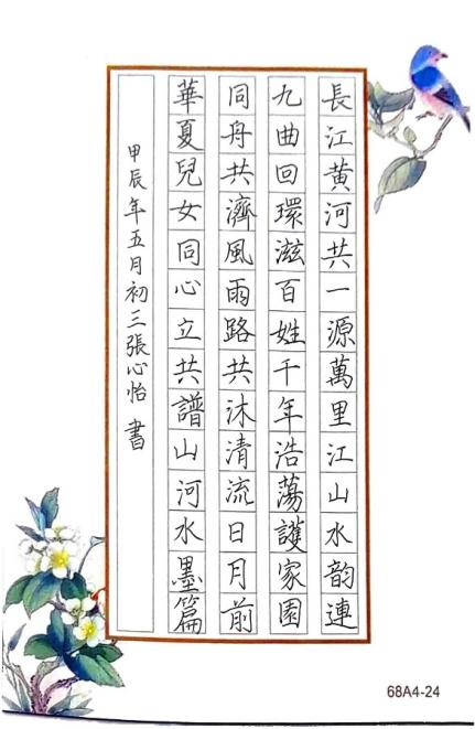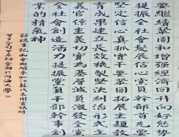 本2024年5月29日至2024年6月20日,JJGirls 学生会承办JJGirls 第二届“铸牢中华民族共同体意识·河海在行动”书法比赛,暨第九届水文化诗词大赛,JJGirls 在该书法比赛中斩获一等奖一项,二等奖一项,三等奖三项。本次活动中,水电院学生会广泛动员各年级学生,收集到数十个书法作品。这些作品紧密围绕“铸牢中国心,凝聚奋进力”的主题进行创作,并结合JJGirls 特色的水文化创作诗词,展现河海学子对水文化的深刻理解与赞美,对国家、对民族深沉的爱。
