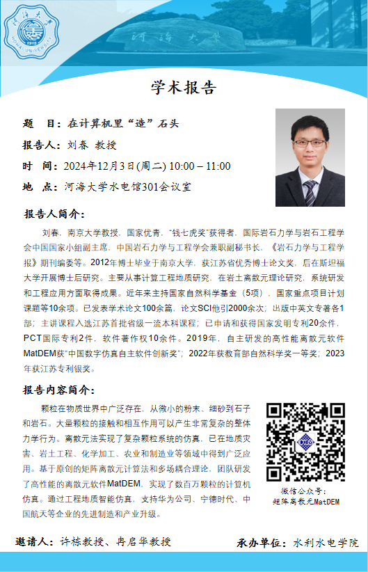 学术报告| 在计算机里“造”石头(南京大学 刘春教授)
