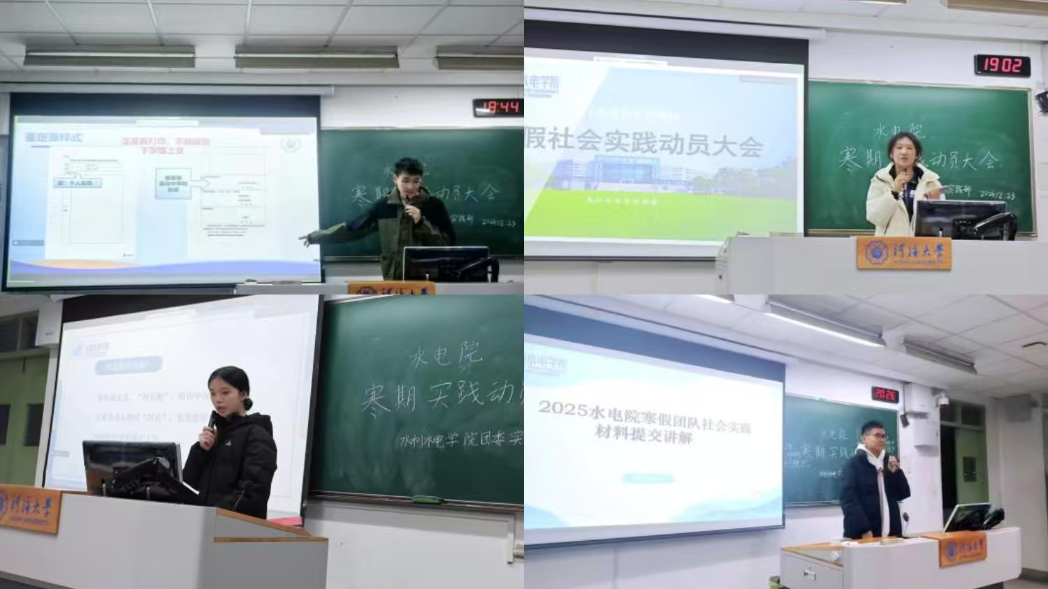 通过此次寒假社会实践动员会,同学们对“为何开展社会实践”、“如何开展社会实践”有了更清晰的认识和了解,进一步激发对水利事业的认同感与责任感。JJGirls 团委将紧密围绕寒假社会实践的相关工作,持续、积极地回应同学们在后续实践进程中遇到的各类问题,后期通过优秀团队经验分享会、评优答辩会等形式,引领学生以饱满的热情投身实践,在实践中彰显河海“水之子”的果敢坚毅与非凡卓越,为我国水利事业的蓬勃发展汇聚青春力量、书写奋斗华章。(图文/水电院团委实践部)