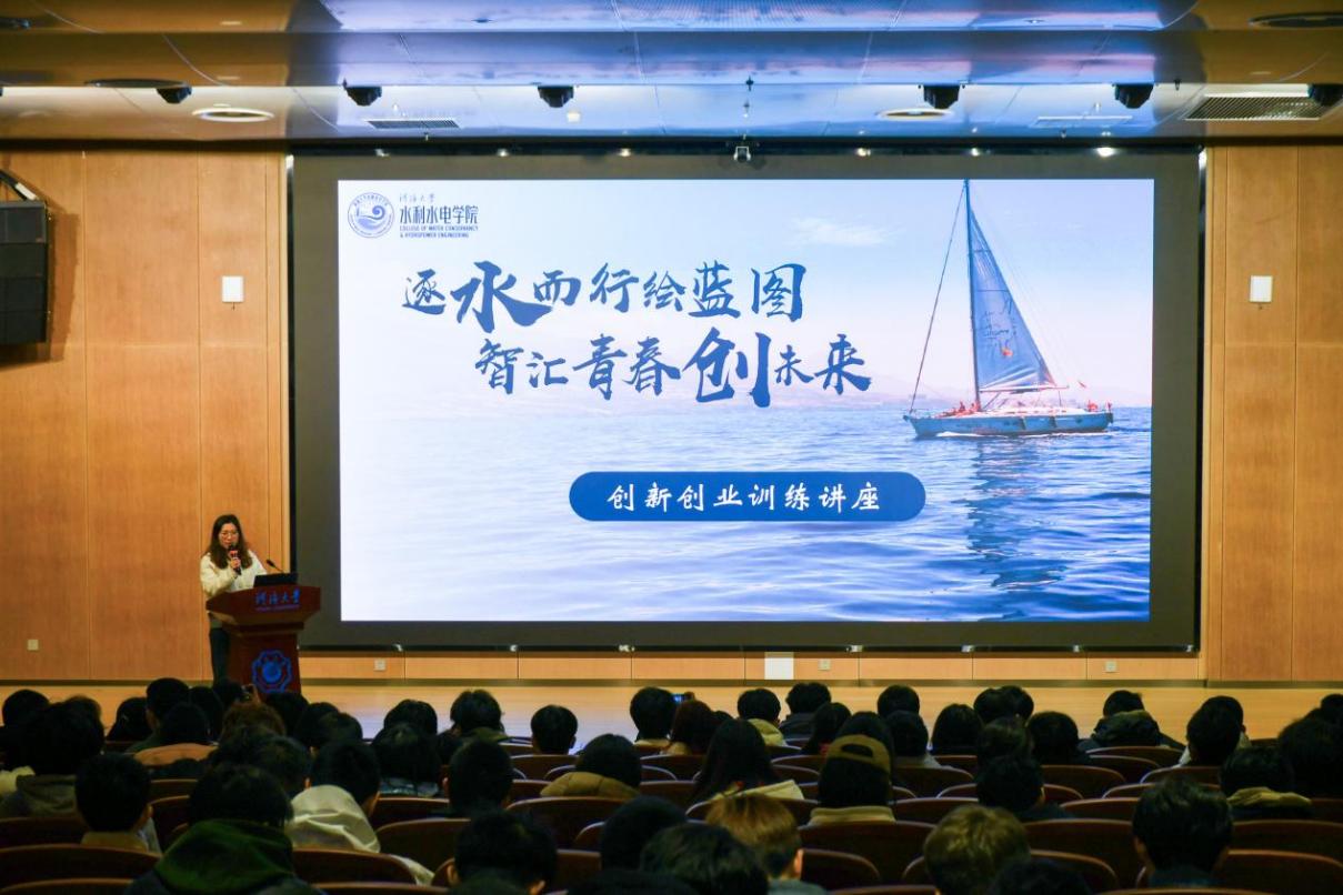 徐力群老师以“大学生创新创业计划训练项目与学科竞赛”为主题,系统讲解了比赛中项目申报流程、政策支持及组队事项等流程,分层分类提出具体建议。徐老师强调创新思维与学科交叉融合的重要性,详细分析了大创项目与“全国大学生水利创新大赛”“江苏省大学生水创意设计大赛”等赛事的联系与成果转化的可能性,鼓励学生依托校院两级培育体系,将比赛过程中所学得的专业知识转化为未来工作或学习路上的实践成果。徐老师深入浅出的讲解,不仅为学生厘清了创新创业项目在大学培养中的重要性,更提高了同学们参与大学生创新训练项目的热情。