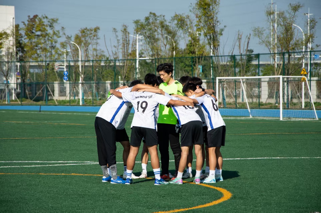 在对方密集的防守下,来自本科生队的王云龙闪转腾挪,摆脱防守,传出威胁球。队友祝子煜接队友助攻首开纪录,打入一球。研究生队在上半场落后的情况下没有气馁,及时做出调整,在本科生队的后场积极拼抢。在坚持不懈的高压争夺下,研究生队汪蔚涵抓住对方后卫失误,打进一球扳平比分,将双方重新拉回到同一起跑线。