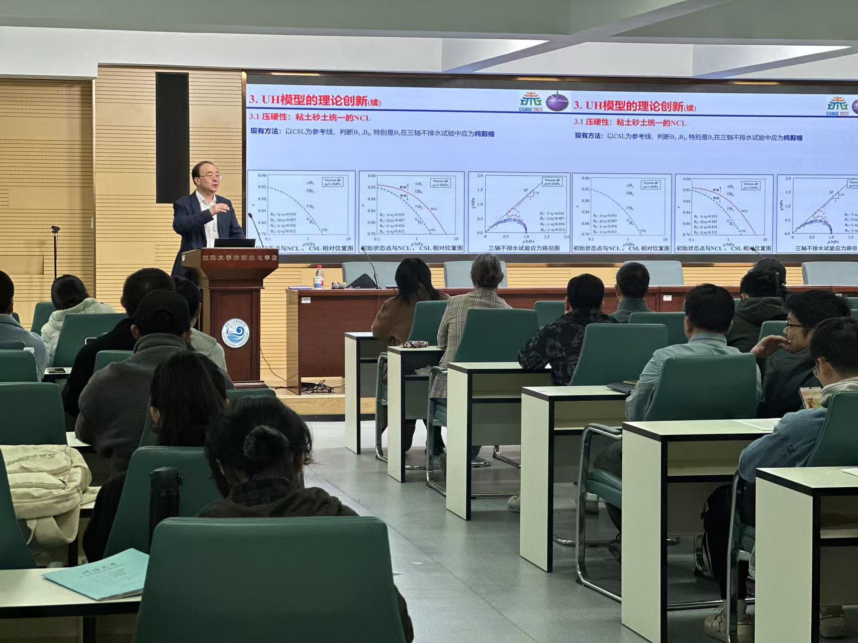 在交流研讨环节,姚教授与参会师生就本构理论的研究方法、推广应用及土力学领域的热点问题进行了深入探讨。(图/陈良蕾,文/陈斌)