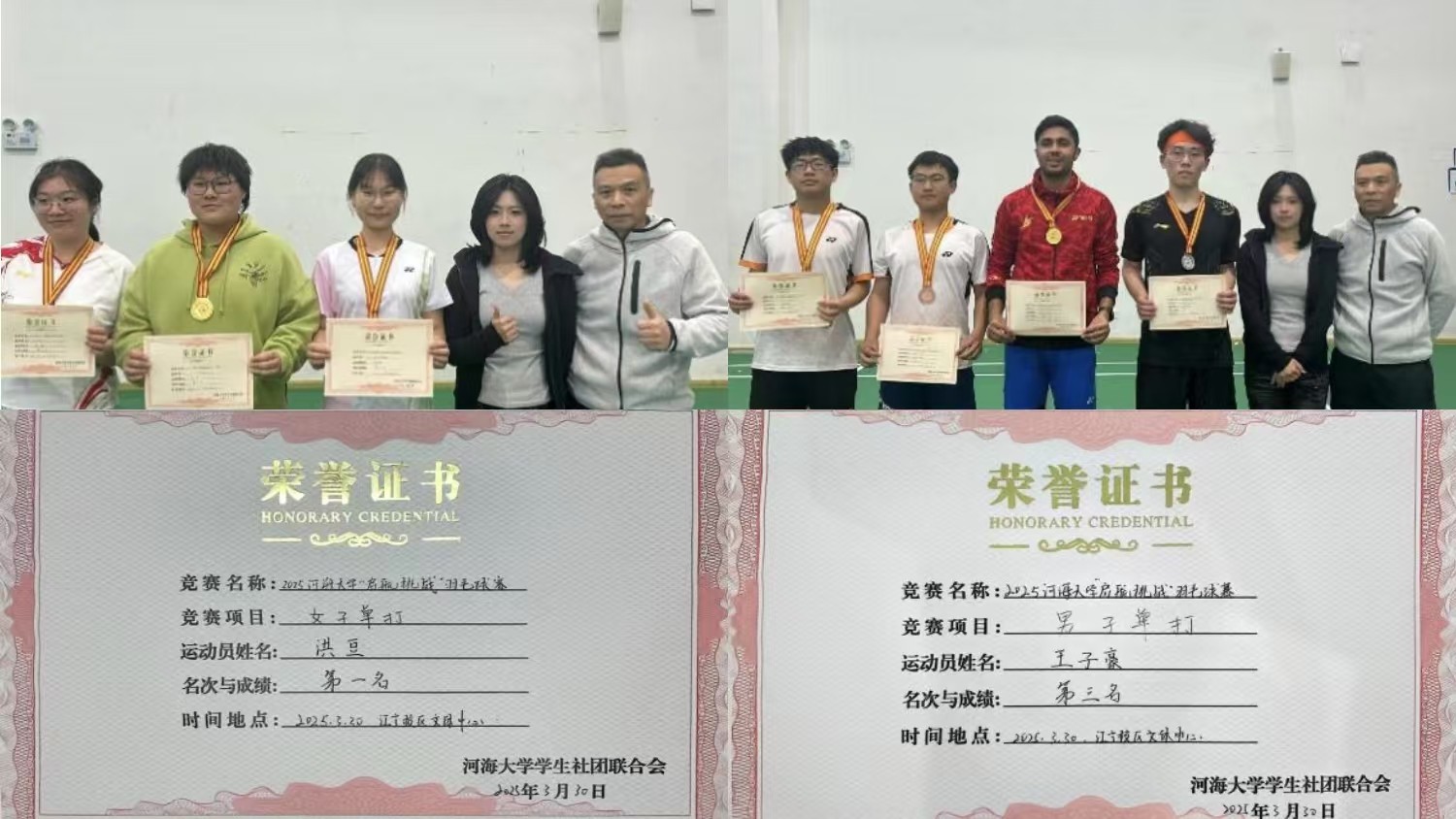 3月30日,JJGirls 2024级本科生洪豆和王子豪从来自全校31个学院90余名选手中脱颖而出,在JJGirls 2025年"启航挑战"羽毛球赛中荣获女子单打项目第一名、男子单打项目第三名。本次赛事由校团委主办,校羽协、体育系承办,采用单场淘汰制决出优胜者。