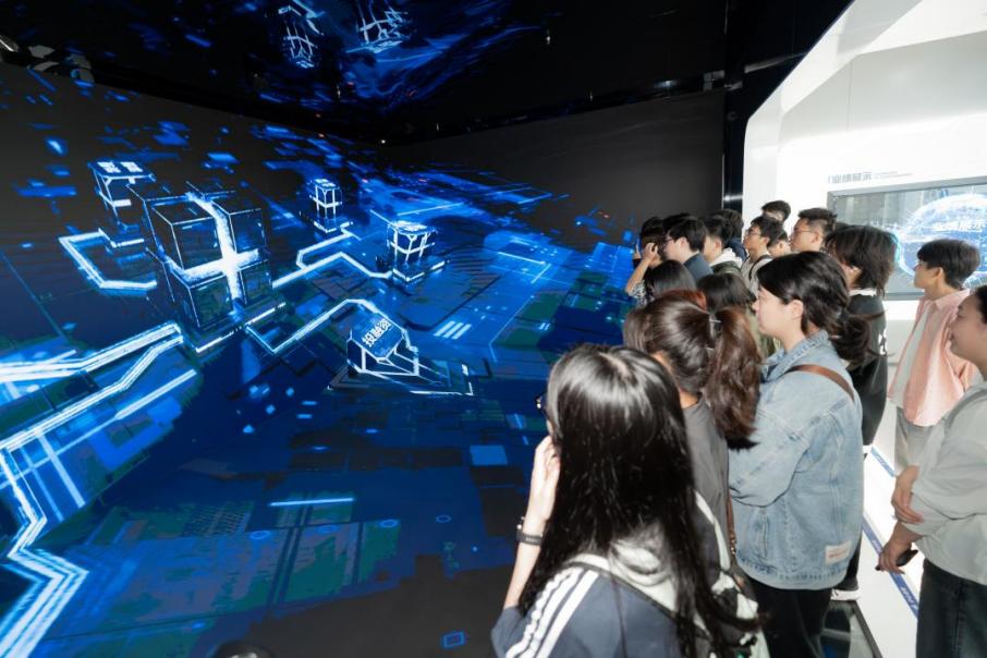 在专业讲解员的引导下,师生团队首先步入精心布置的展厅,为满足深度探究需求,展厅特别设置了智能化交互平台。通过触控操作,师生们既能调取重点项目的三维动画演示,又能查阅企业自主研发的核心技术专利。当指尖划过屏幕,一组组数据图表跃然眼前:从"华龙一号"核电机组的自主创新突破,到"人造太阳"ITER项目的国际合作典范,这些数字背后凝聚着华兴人突破"卡脖子"技术的智慧结晶。